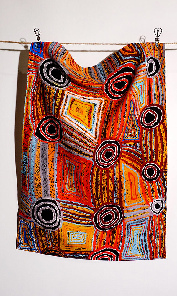 Aboriginal Art Cotton Tea Towel by Mary Napangardi Brown