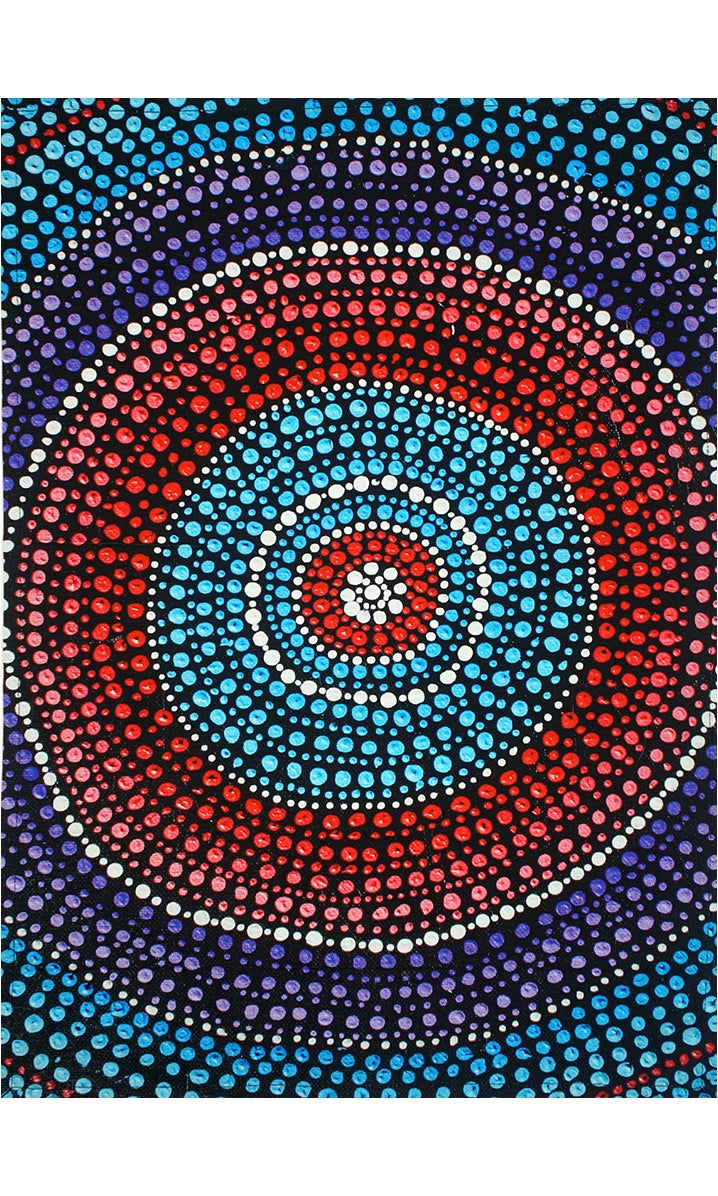 Our printing is a hand process that traditional handicraft workers can adopt, already having a similar skills set. Handicrafts in general are struggling to survive, pushed aside by industrial mass production. People are being displaced from their home villages due to lack of income. Screen printing is both productive and a clean industry that can be practiced on a small scale. We use water based inks. The designs belong to Aboriginal artists, who receive generous royalties on every purchase made.