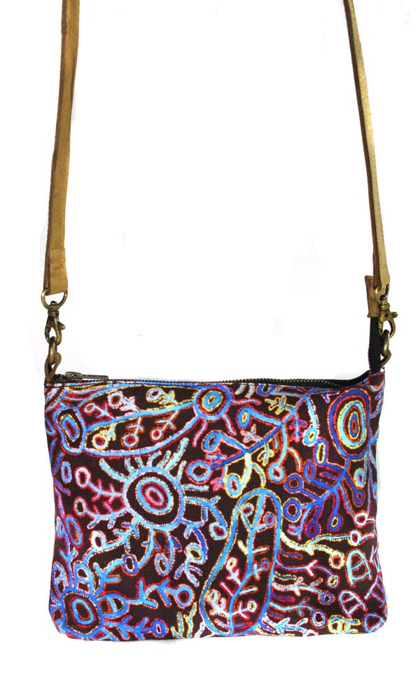 Aboriginal Art Cross Body Bag Leather Trimmed by Theo Hudson