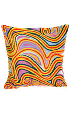 These beautiful, unique textiles are a cross -cultural collaboration combining Aboriginal designs and tradional Kashmiri handicraft. The chain-stitched (Gabba in local Kashmiri) cushions are hand stitched by