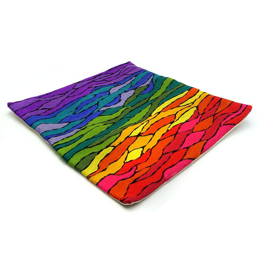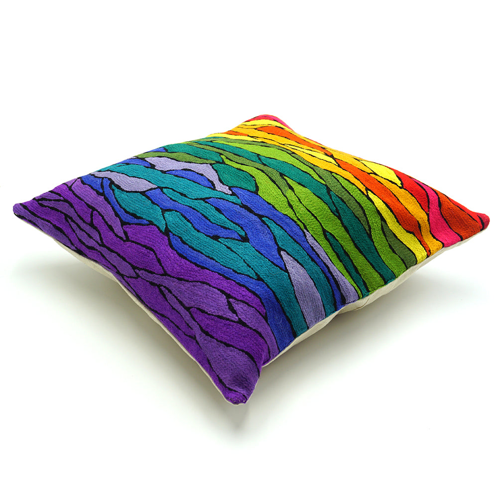 These beautiful, unique textiles are a cross -cultural collaboration combining Aboriginal designs and tradional Kashmiri handicraft. The chain-stitched (Gabba in local Kashmiri) cushions are hand stitched by