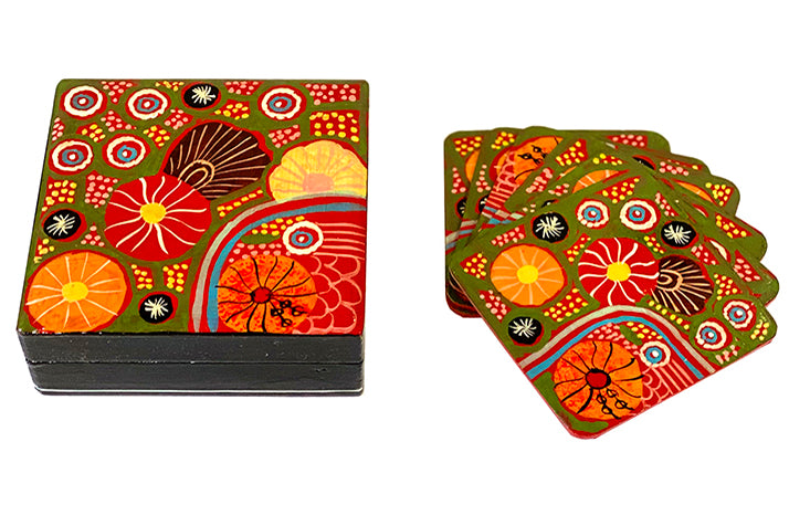 Aboriginal Art Lacquer Coaster Set by Damien & Yilpi Marks
