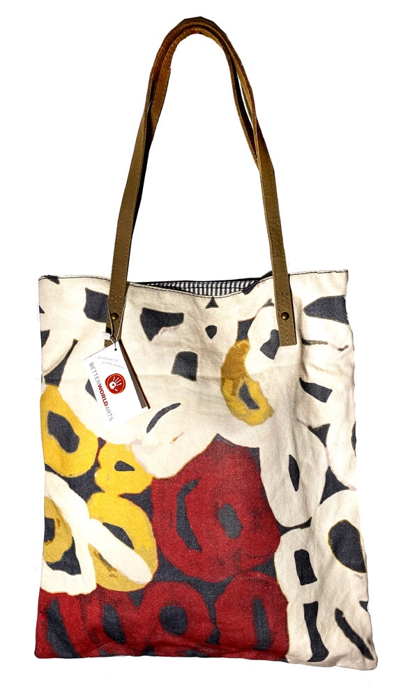 Aboriginal Art Shoulder Tote Bag Leather Trimmed by Anmanari Brown