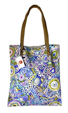 Aboriginal Art Shoulder Tote Bag Leather Trimmed by Cedric Varcoe