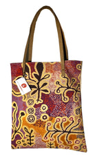 Aboriginal Art Shoulder Tote Bag Leather Trimmed by Paddy Stewart