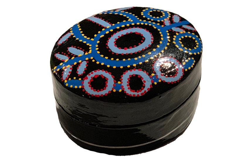 Aboriginal Art Small Lacquer Pill Box by Theo Hudson