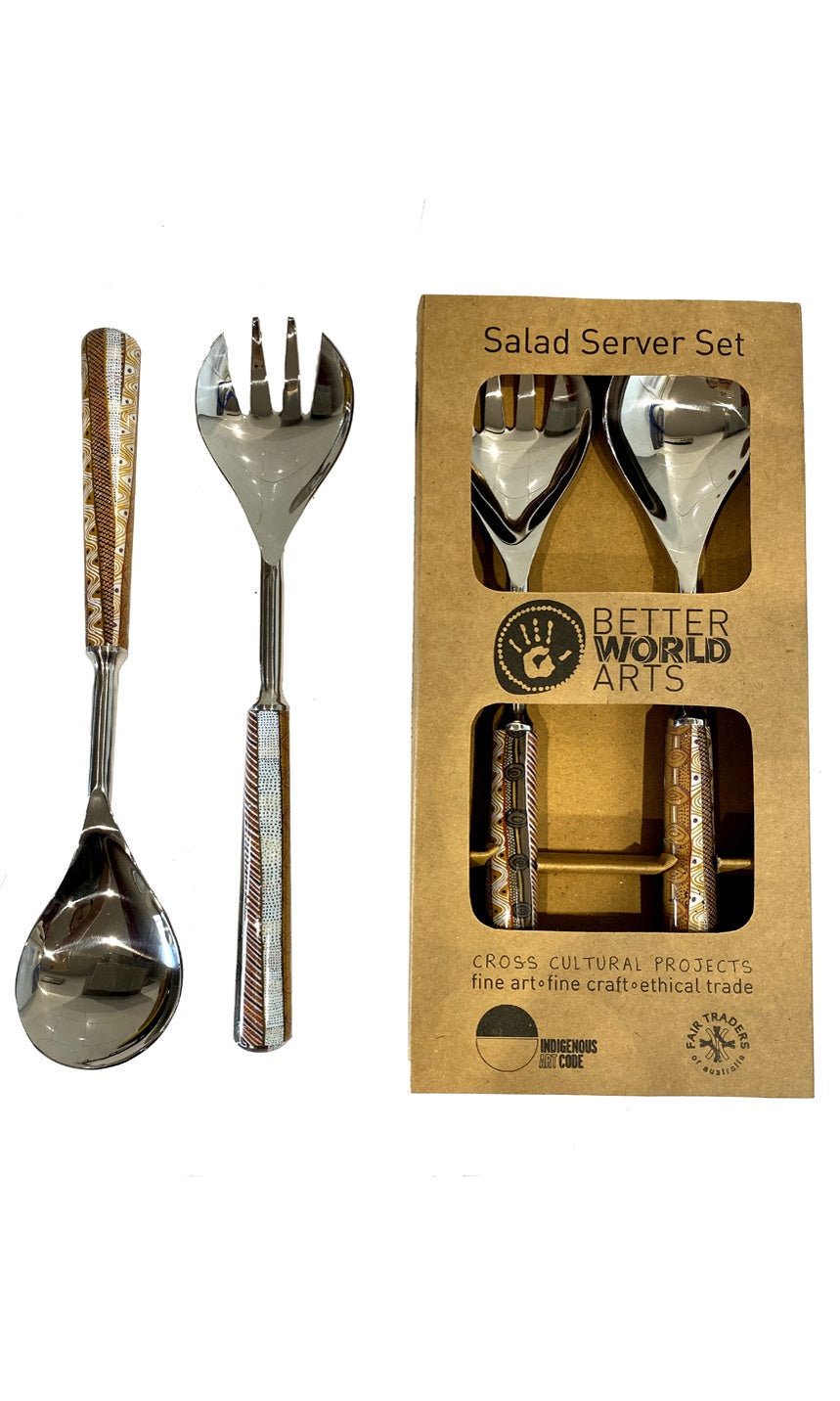 Aboriginal Art Steel Salad Servers by Josette Papajua