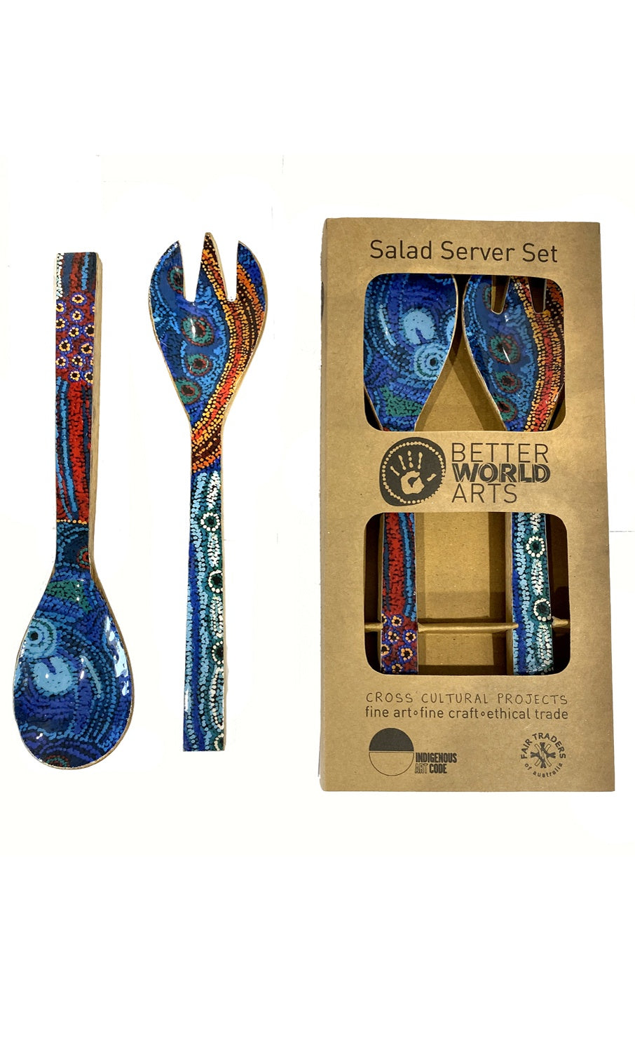 Aboriginal Art Wooden Salad Servers by Julie Woods
