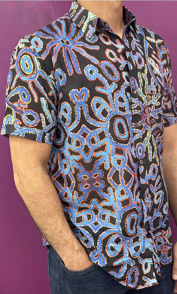 Cotton Men's Shirt Aboriginal Art by Theo Hudson