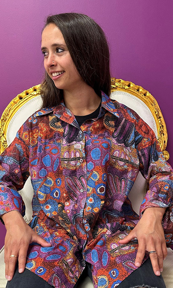 Cotton Women's Shirt Aboriginal Art by Andrea Mimpitja Adamson