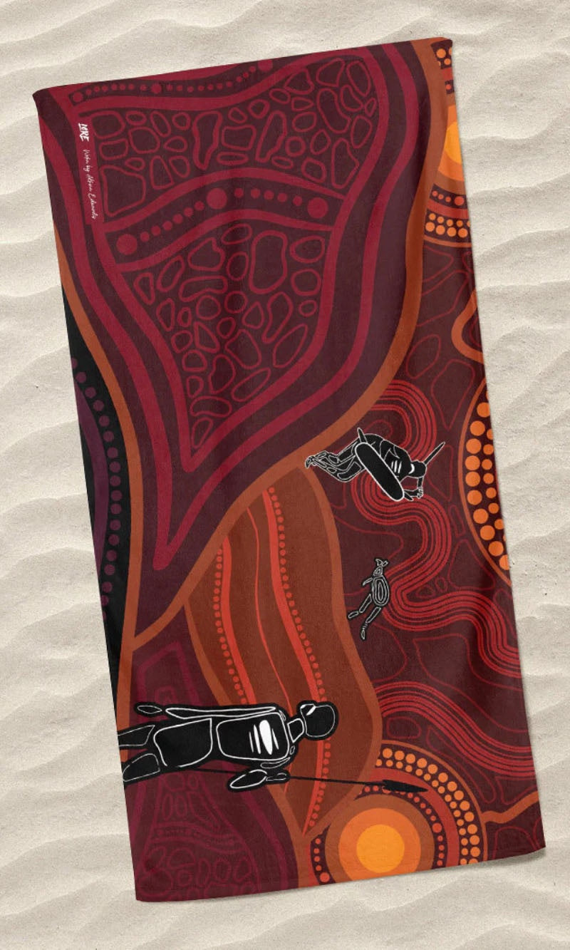 Make your next beach trip an amazing experience with the beautiful beach towels from Lore, featuring artwork from Alkina Edwards. We have a beautiful range of sublimated designs to choose from and each artwork tells the story of the artist's deep connection to Country.