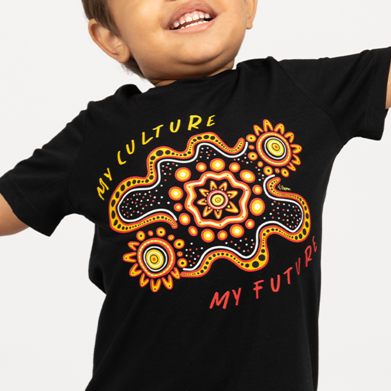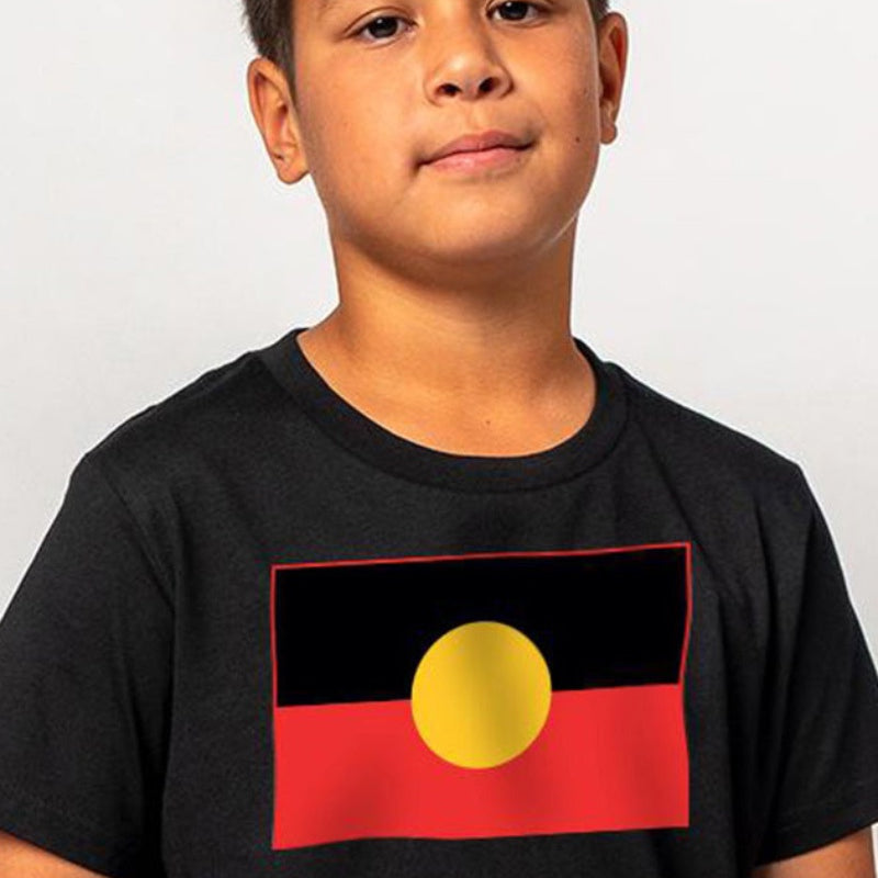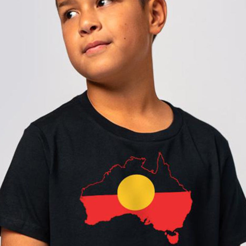 This kids tee is a part of our ‘Raise the Flag’ collection, a range of products that celebrate the Aboriginal flag finally being freed and placed into public hands.