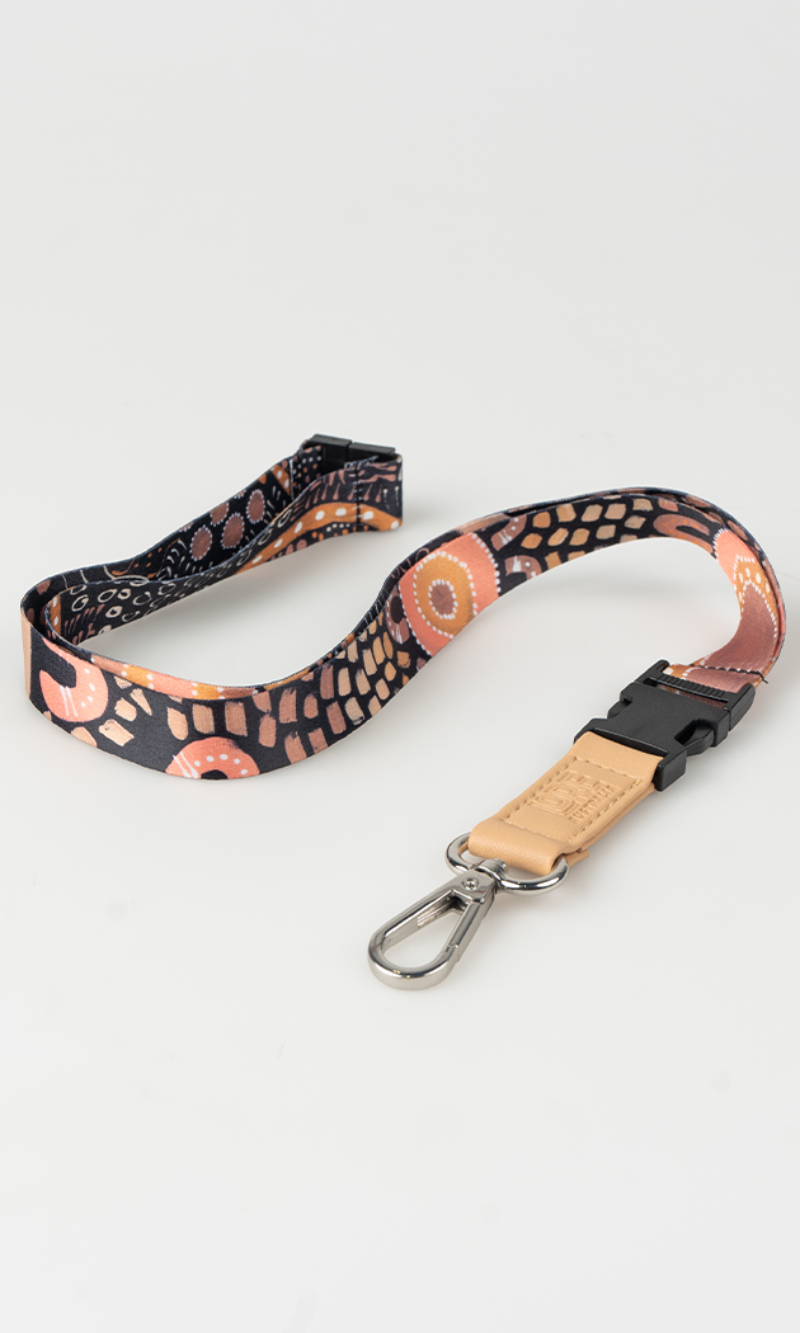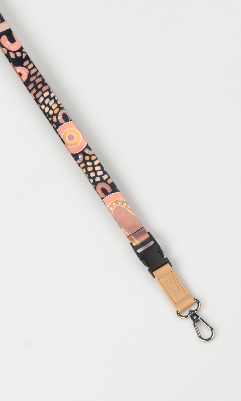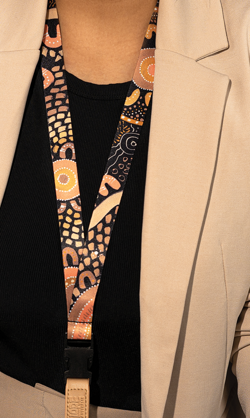 This art piece is a dedication to our Elders, "For Our Elders". The main pathway in this painting is a symbol of the path that our Elders and generations before us have laid. Our Elders have paved the way for us and are constantly sharing their cultural knowledge. The mountains symbolise the struggles and hardships our Elders have been through and how they have consistently shown their strength through their triumph. The campsite at the bottom of the painting represents the past and the top left campsite is our Elders today. The circle around them represents a circle of safety, symbolising to us to always look after, respect and listen to our Elders. We would not be where we are today without our Elders. This painting is dedicated to all of the special Elders in my life who have guided me, taught me and shown me the strength culture has to pull me through even when times are hard.