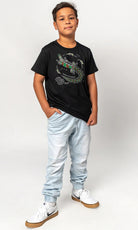 Featuring a ribbed crewneck, 100% combed cotton and double needle hems, this fit is made to endure your child's daily adventures. Pair this regular fit tee with some cargo shorts or black skinny jeans and a pair of sneakers for an easy, everyday look.