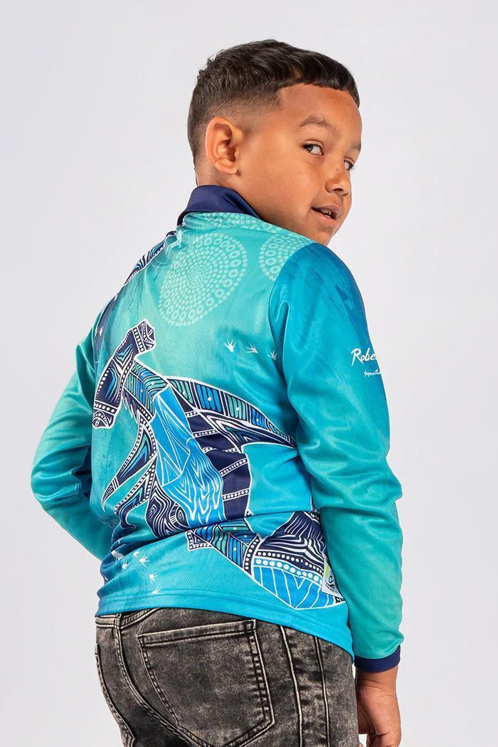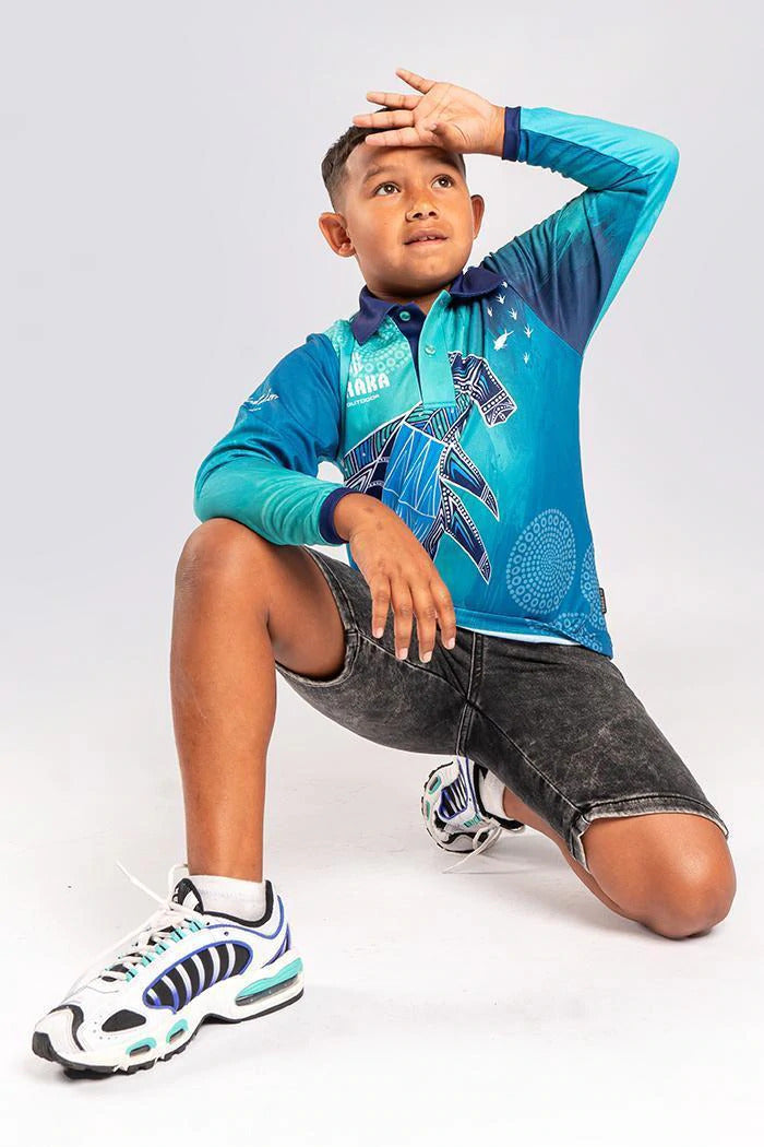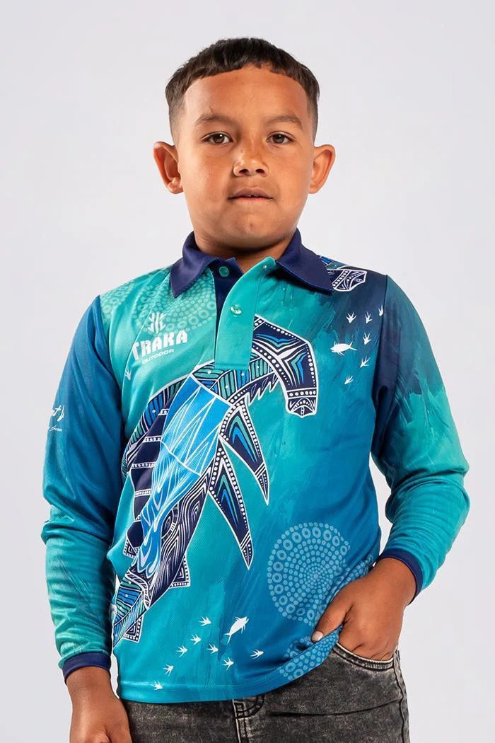 Aboriginal Art Kids Long Sleeve Polo Hammerhead School
