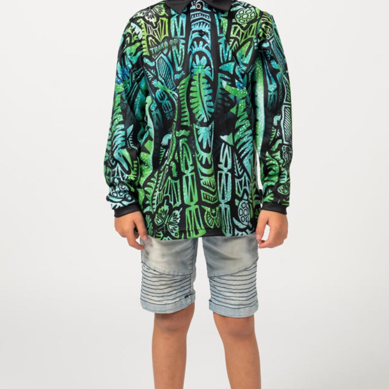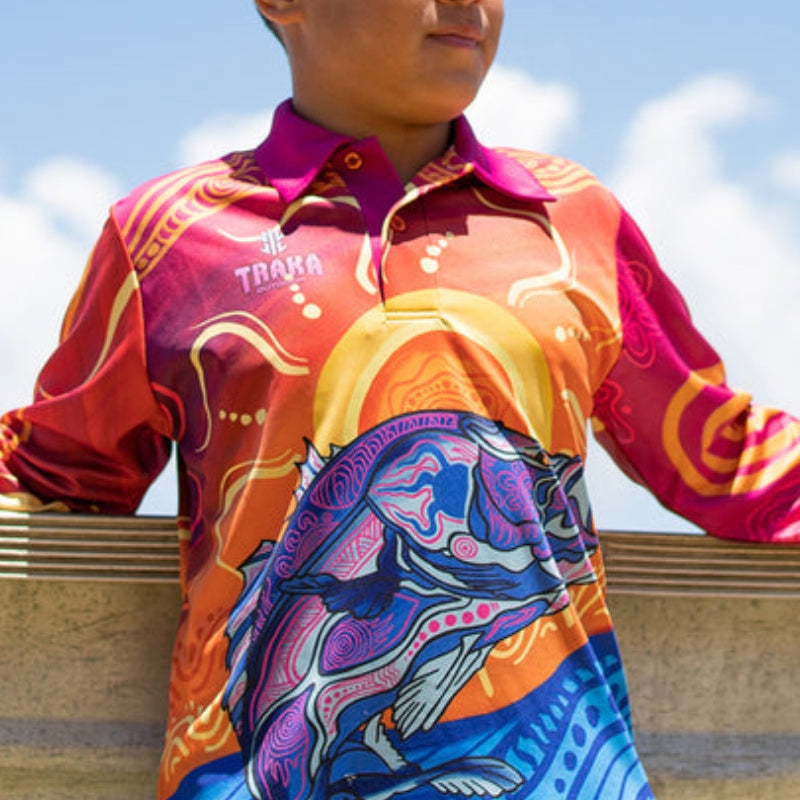 Celebrate the culture and lands of Torres Strait Islander Peoples with this striking range from Luke Mallie. This long sleeve kids polo is designed for the outdoors and offers UPF50+ sun protection so you can have fun outdoors all day long!