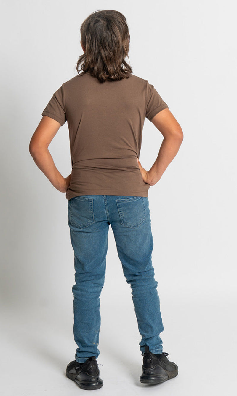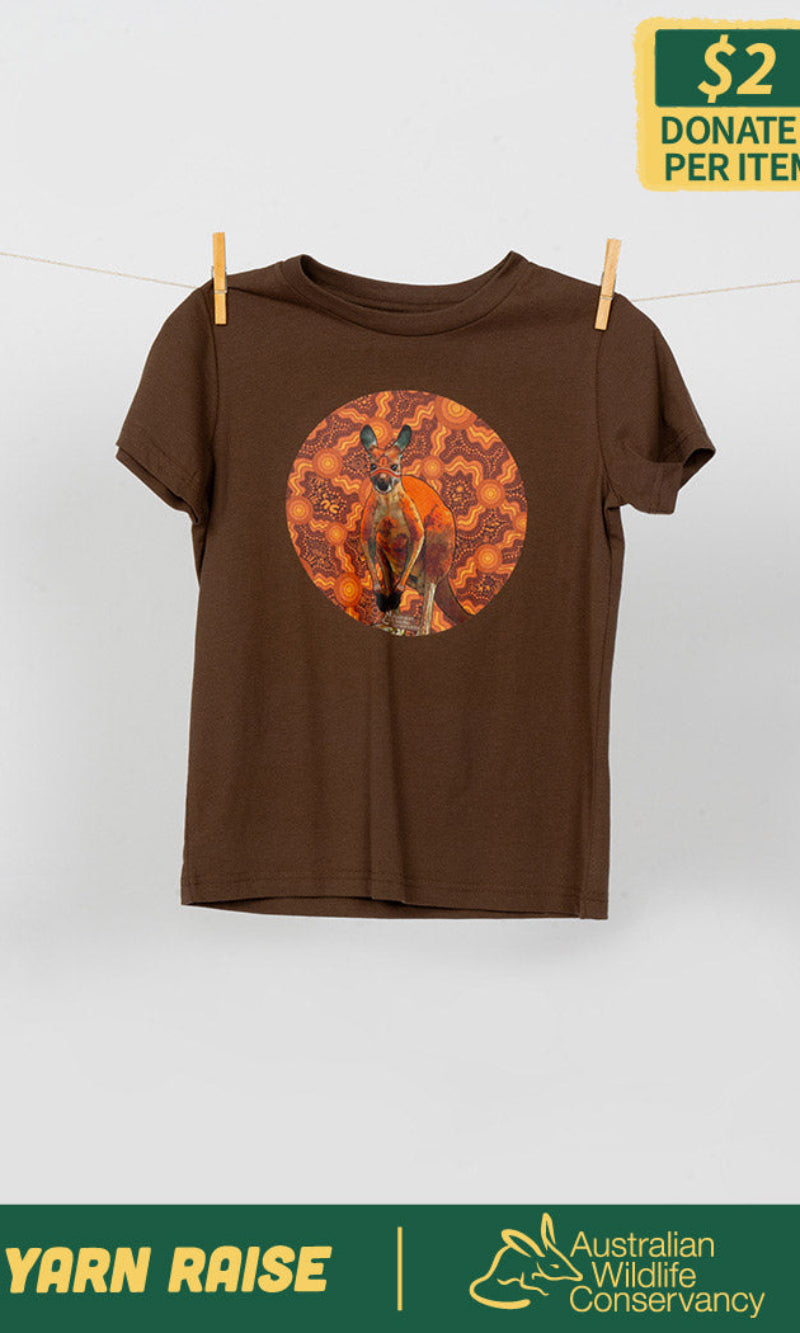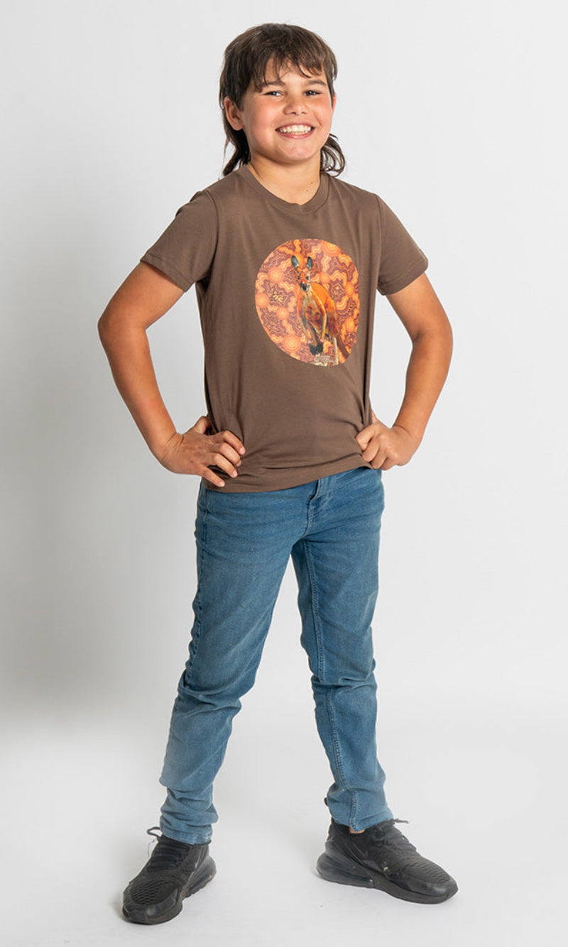 Aboriginal Art Kids T-Shirt Kangaroo (Barra) Walnut