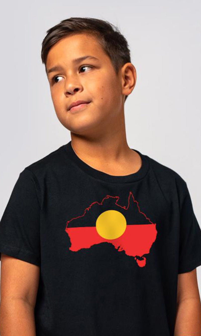 This kids tee is a part of our ‘Raise the Flag’ collection, a range of products that celebrate the Aboriginal flag finally being freed and placed into public hands.