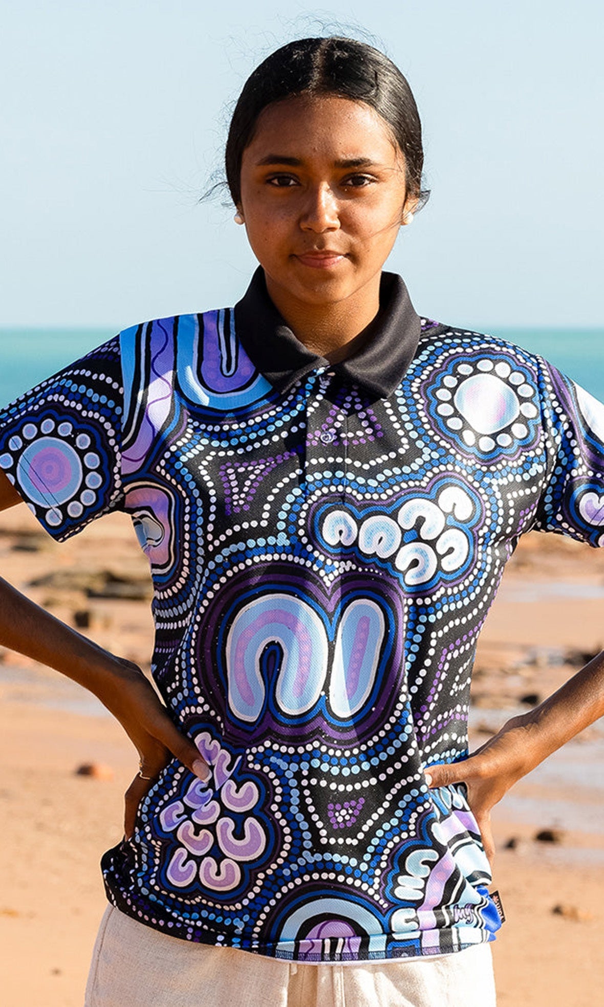 These kids polos feature beautiful designs based on the theme “For Our Elders”. This theme is an acknowledgement and a celebration of all the Elders past and present who have contributed so much to their communities and families.