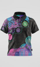 Aboriginal Art Kids Unisex Polo Colours of The Land Essence