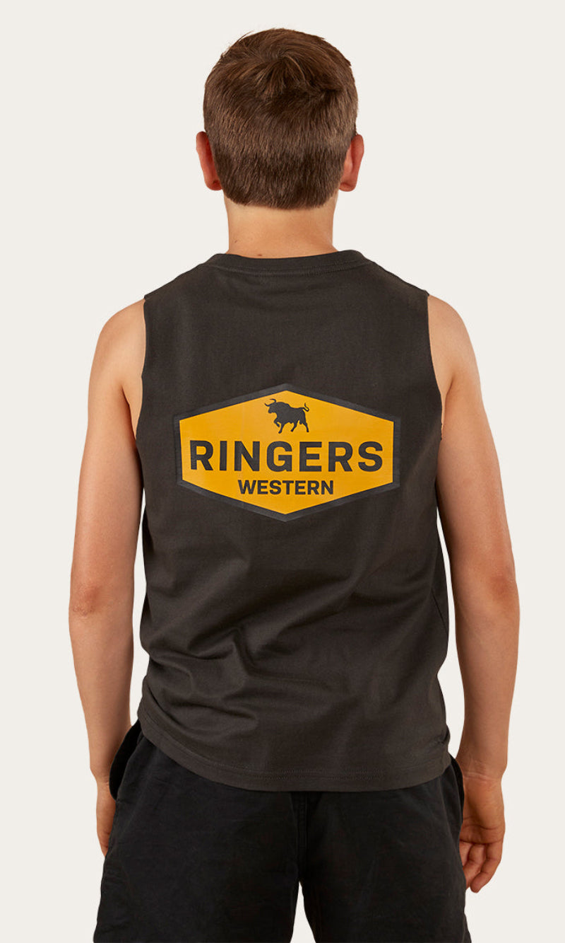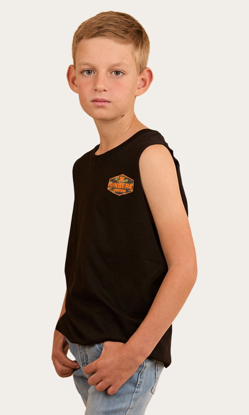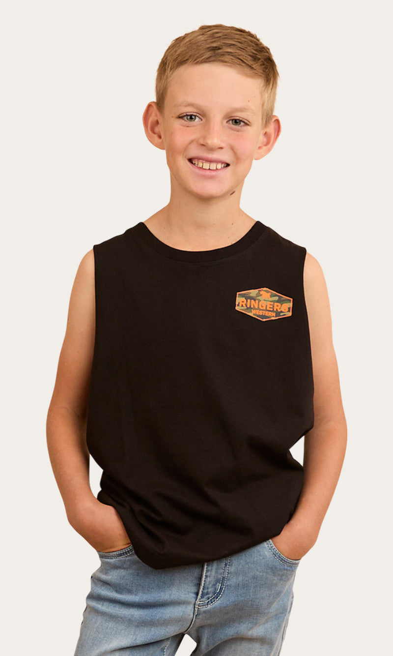 The same Servo print you all know and love on a muscle tank. Designed for those who embrace everything country, this muscle tank combines strength and style in a way that's unmatched. This kids classic fitting muscle tank is made from 100% cotton which is a natural fibre known for its softness, breathability and durability. Made to keep you cool under the hot Aussie sun. The raw edges add a touch of ruggedness, perfect for our mini cowboys and cowgirls. If you are after comfort, this muscle tank has you covered.