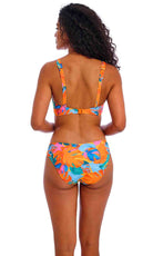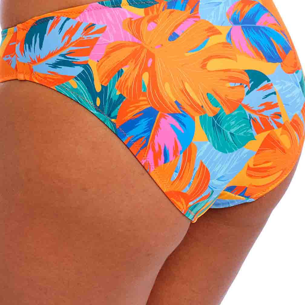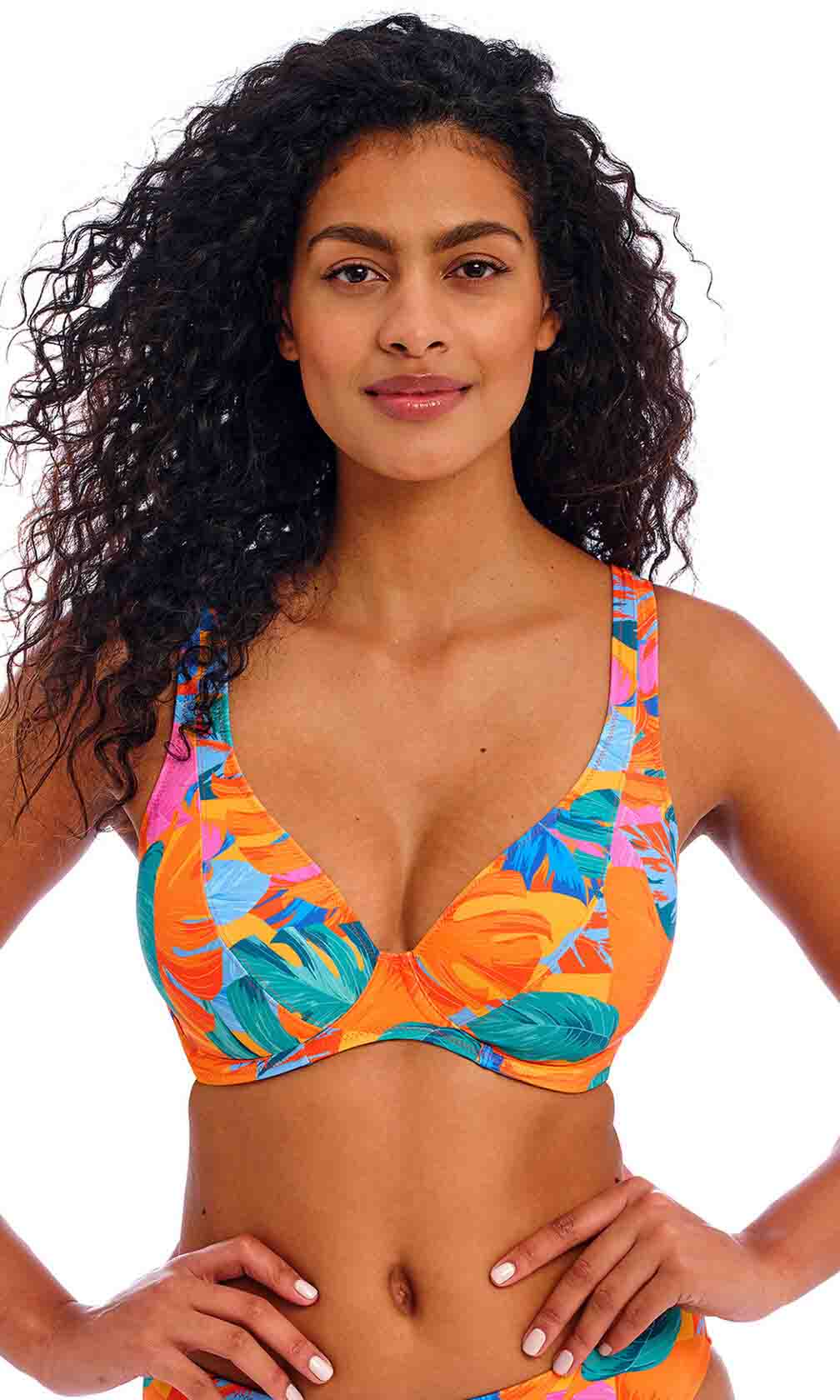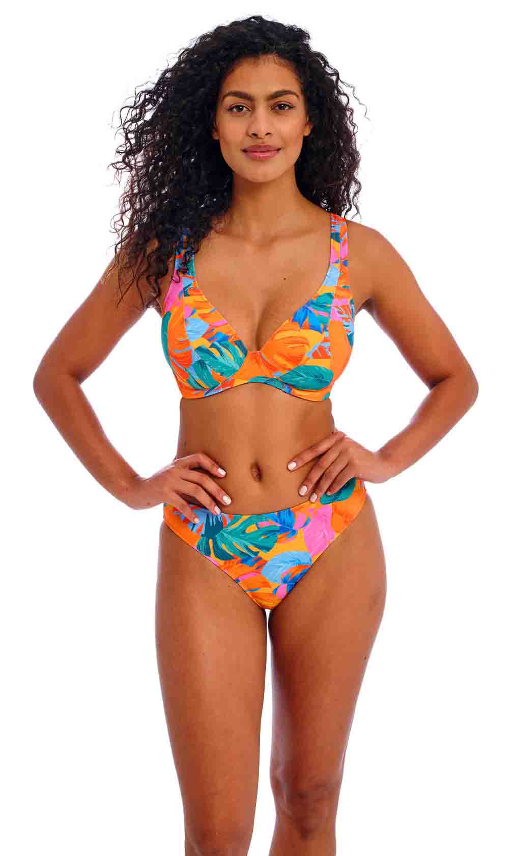 Soak up the tropical sun and hit the waves with Aloha Coast. An oversized colour block palm combines vibrant mangos, hot pinks, ocean blues and luscious greens for the ultimate summer collection. Featuring core styling on a fabric containing recycled yarn for the perfect holiday vibe!