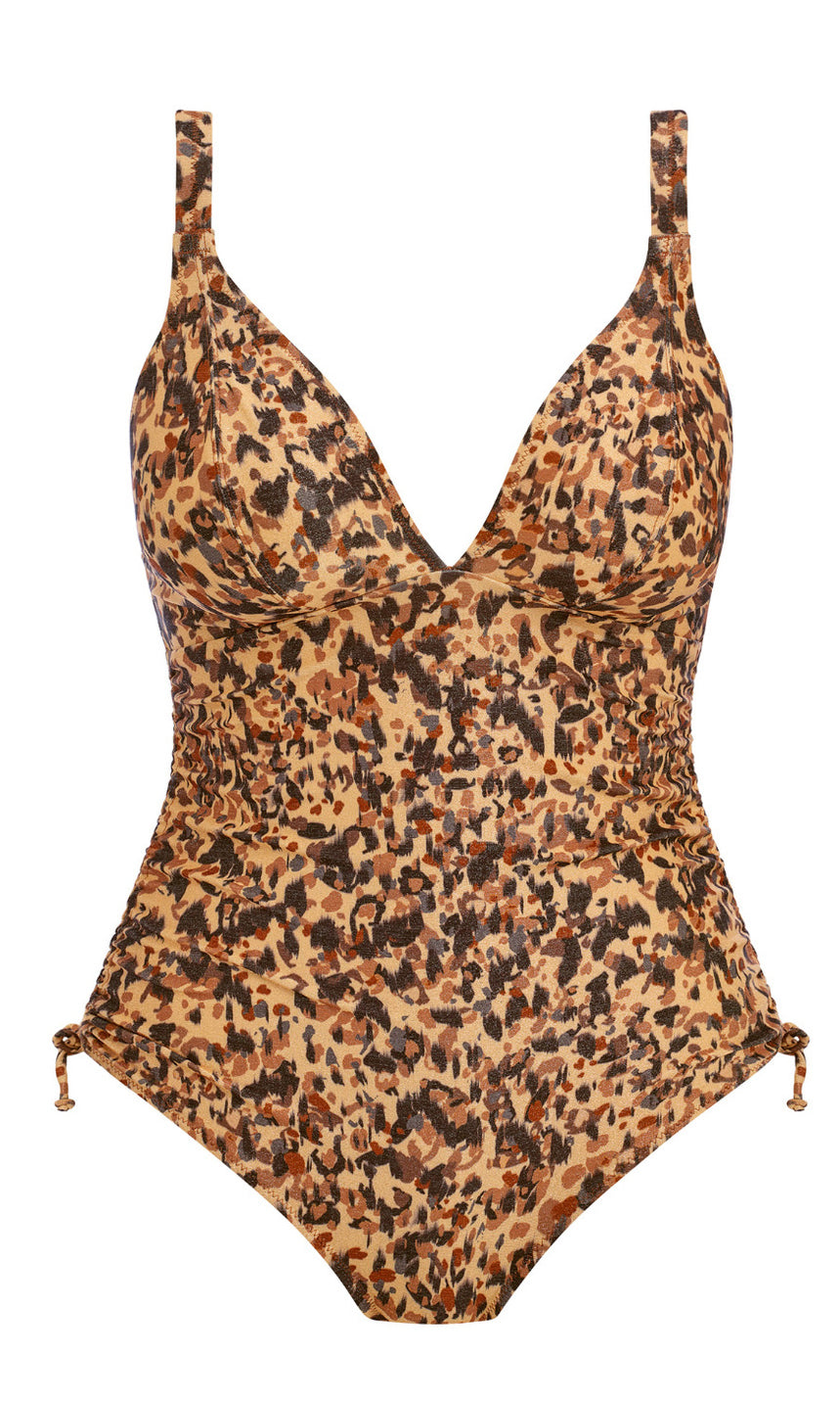 Taking the spotlight this season is all-new Arizona Wave. We loved the collection so much that much we decided to bring it out in not one, not two but three colourways. First up is Dune; an animal mark-making print combining soft blacks and warm chocolate tones on a sandy coloured ground. The fabric contains shimmering metallic yarns, making Arizona Wave the ultimate go-to range this season. Dune includes our most-loved Freya shapes and also introduces our new Non-Wired Swimsuit which offers a sexy low plunging neckline and adjustable ruched side detail for customisable coverage, for the perfect beach-to-bar style!