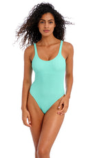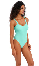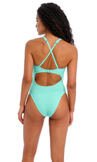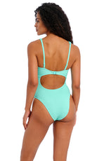 This collection plays host to a whole selection of shapes, and be sure to take a look at our new 80’s inspired Swimsuit. Following the ‘tank top’ trend this suit features a low scoop back and high-rise leg for reduced coverage and on-trend styling.