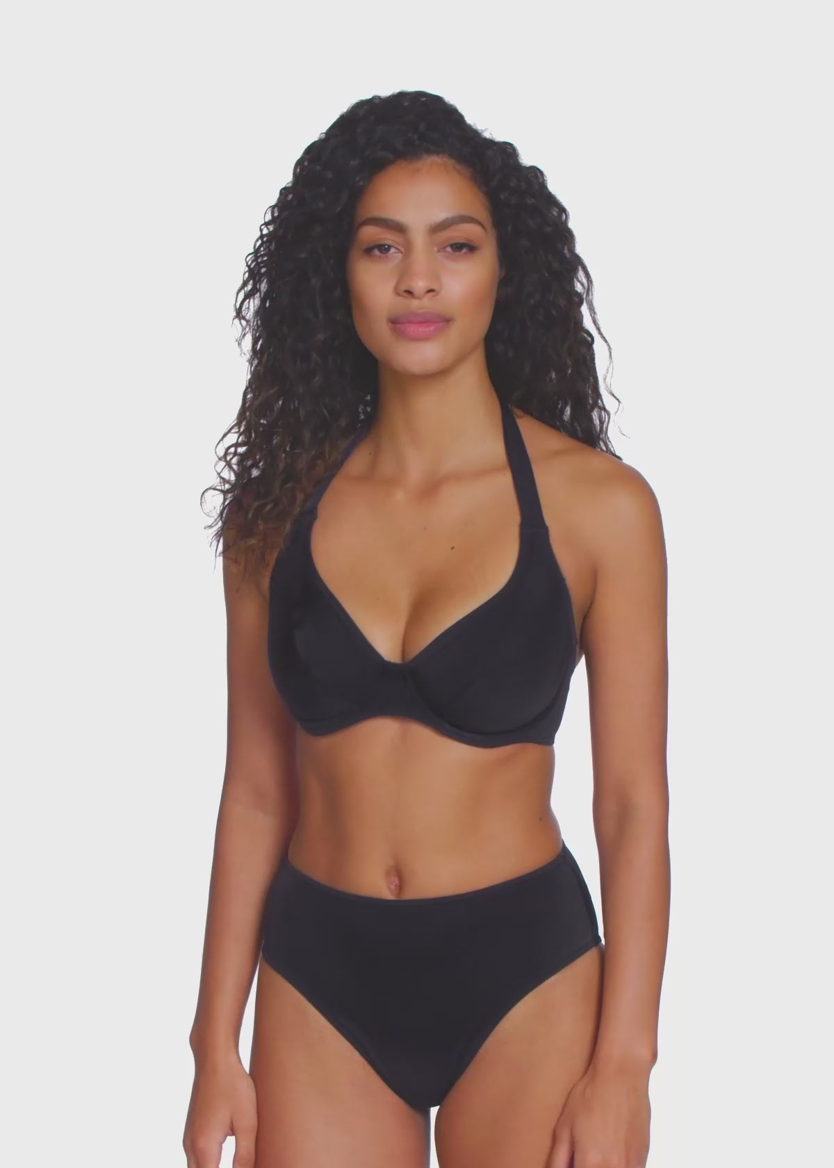 Jewel Cove Plain Black High Waist Bikini Brief, Special Order XS - 2XL