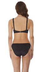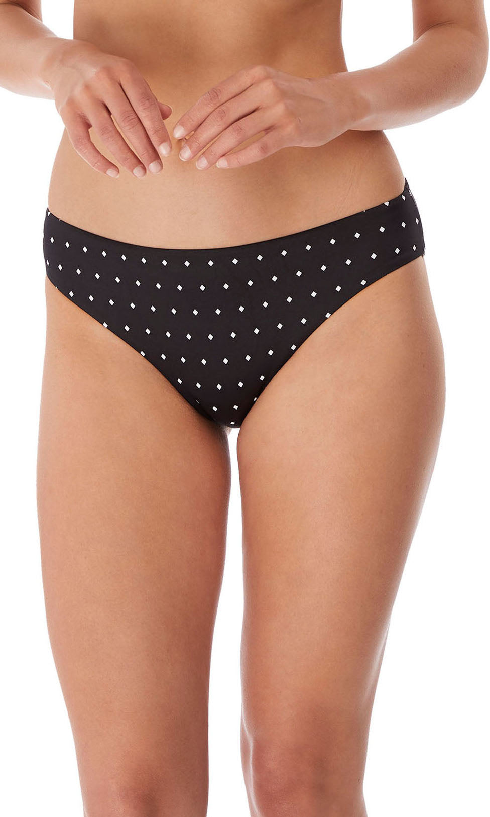 Poolside confidence is yours with Jewel Cove. A contemporary twist on a classic polka dot design, the repeat diamond print stretches across an Black ground.