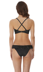 Poolside confidence is yours with Jewel Cove. A contemporary twist on a classic polka dot design, the repeat diamond print stretches across an Black ground.