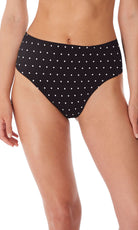 - Based on the standard high waist brief shape but with a higher waist and scoop leg line