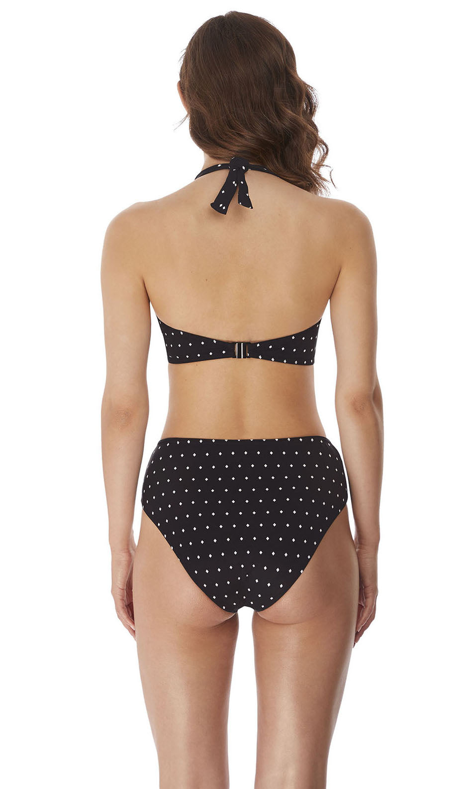 Poolside confidence is yours with Jewel Cove. A contemporary twist on a classic polka dot design, the repeat diamond print stretches across an Black ground.