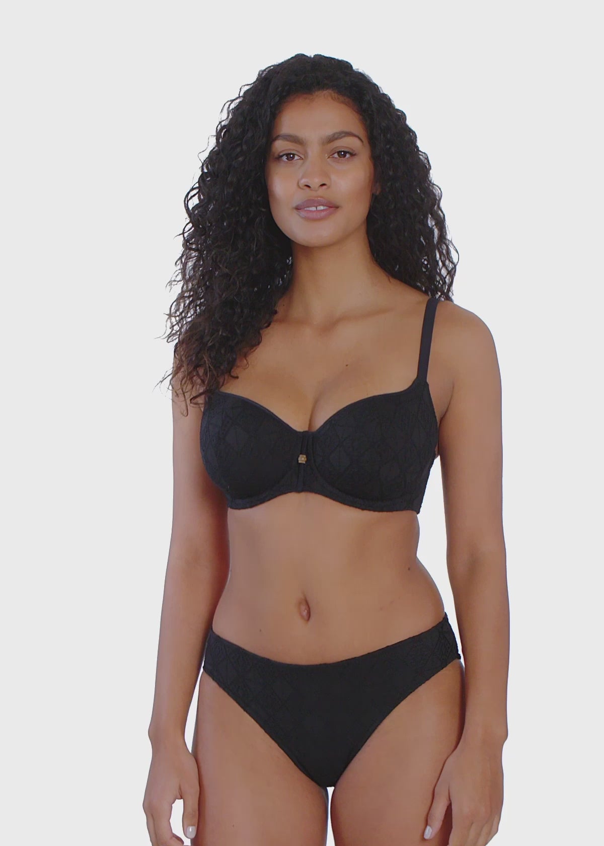 Truly offering something for every Freya girl, select from a wide range of shapes. From Halter Bikini tops with plunging necklines to Bikini Briefs with cheeky high-cut legs and stringy styling. Not stopping there, Nomad Nights also has an exciting sustainability story to tell with its use of a recycled yarn. Soon to be a staple in your swimwear wardrobe.