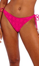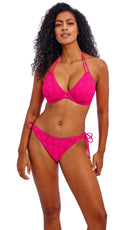 It’s all in the detail with Nomad Nights! Our bohemian inspired crochet is paired with gold and natural stone effect beads for the perfect boho vibe. Featuring our most loved shapes in a variety of different styling options, the range features plunging necklines, cheeky high-cut legs, stringy styling and adjustable leg coverage for a truly versatile collection that will see you through from dusk till dawn. With Fuchsia colourway introducing a pop of hot pink for the perfect summer staple. What’s even better, all styles in the collection include over 40% recycled content!