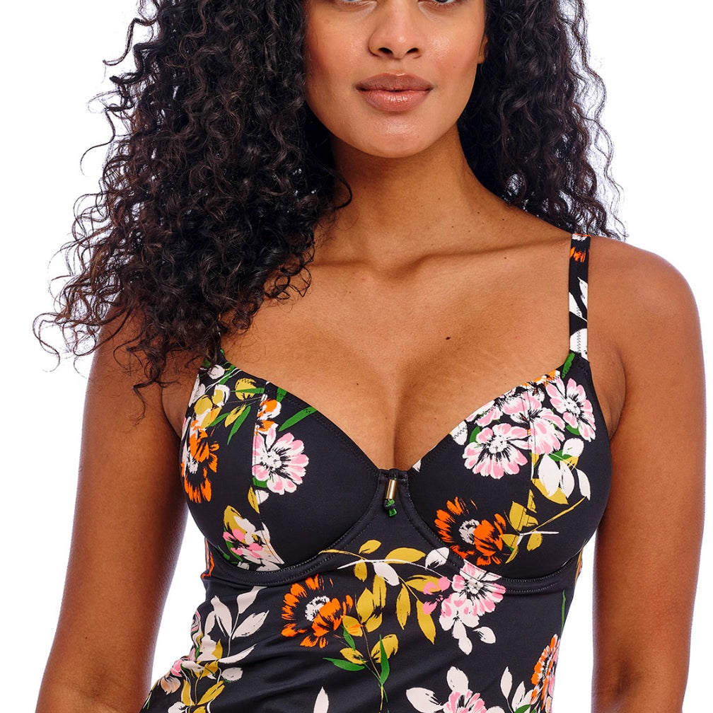 Make a splash in new Twilight Soul, which features a picturesque floral print infused with sunset hues across a black base. Select styles are accented with gold bead detailing and the range offers a variety of different coverage levels with something for everyone, as well as sizing up to a J cup. Feel the most confident version of you in Freya Swim, wherever your holiday takes you!
