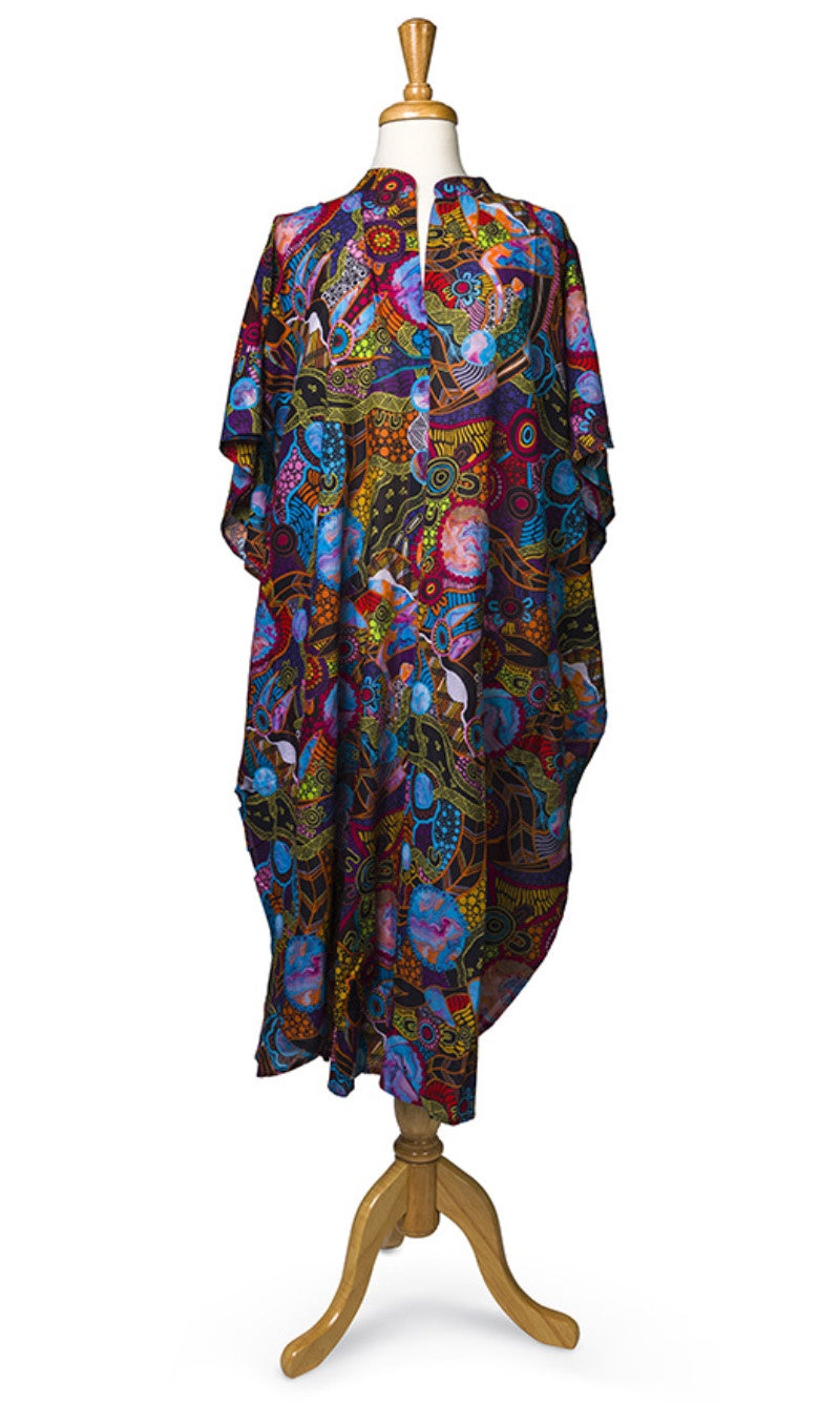 Cotton Aboriginal Art Long Kaftan by Justin Butler