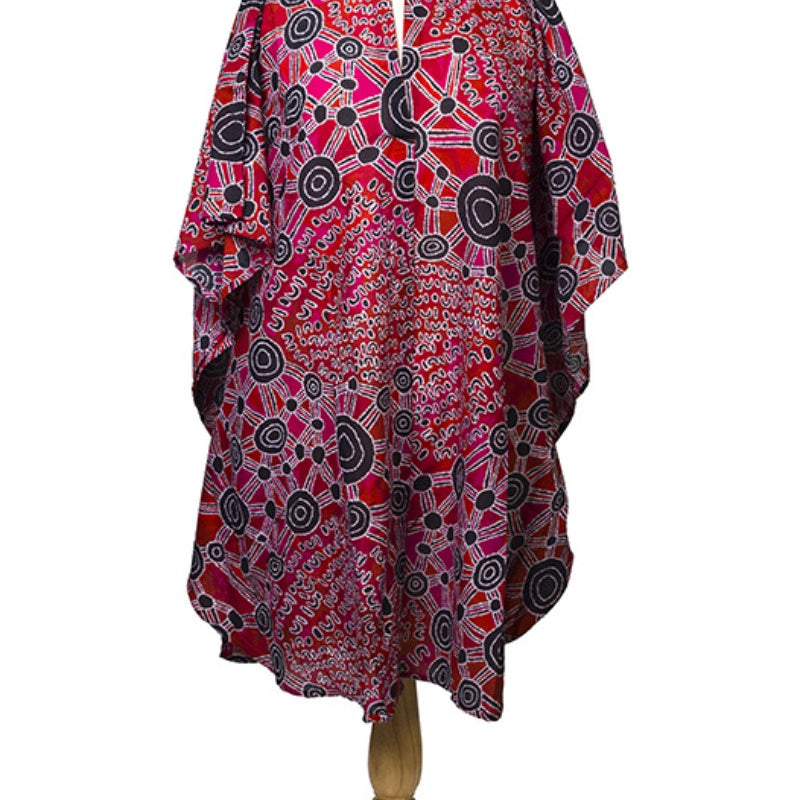 Cotton Aboriginal Art Short Kaftan by Justin Butler