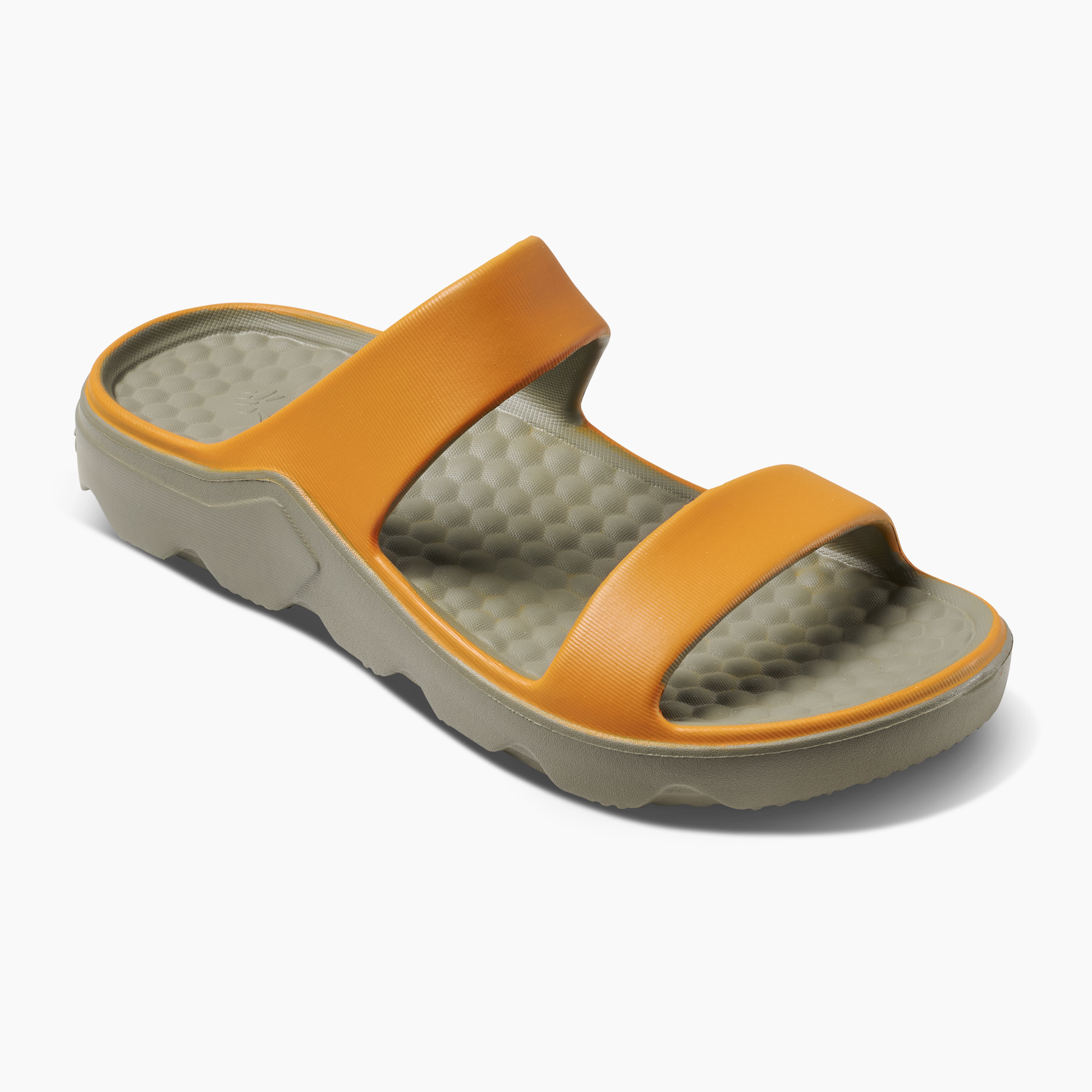 A sporty take on a two-strap sandal that showcases a soft lug sole design with a cushioned footbed for comfort and durability. A sleek rugged take on a sandal that provides that cool laid-back style to any outfit.