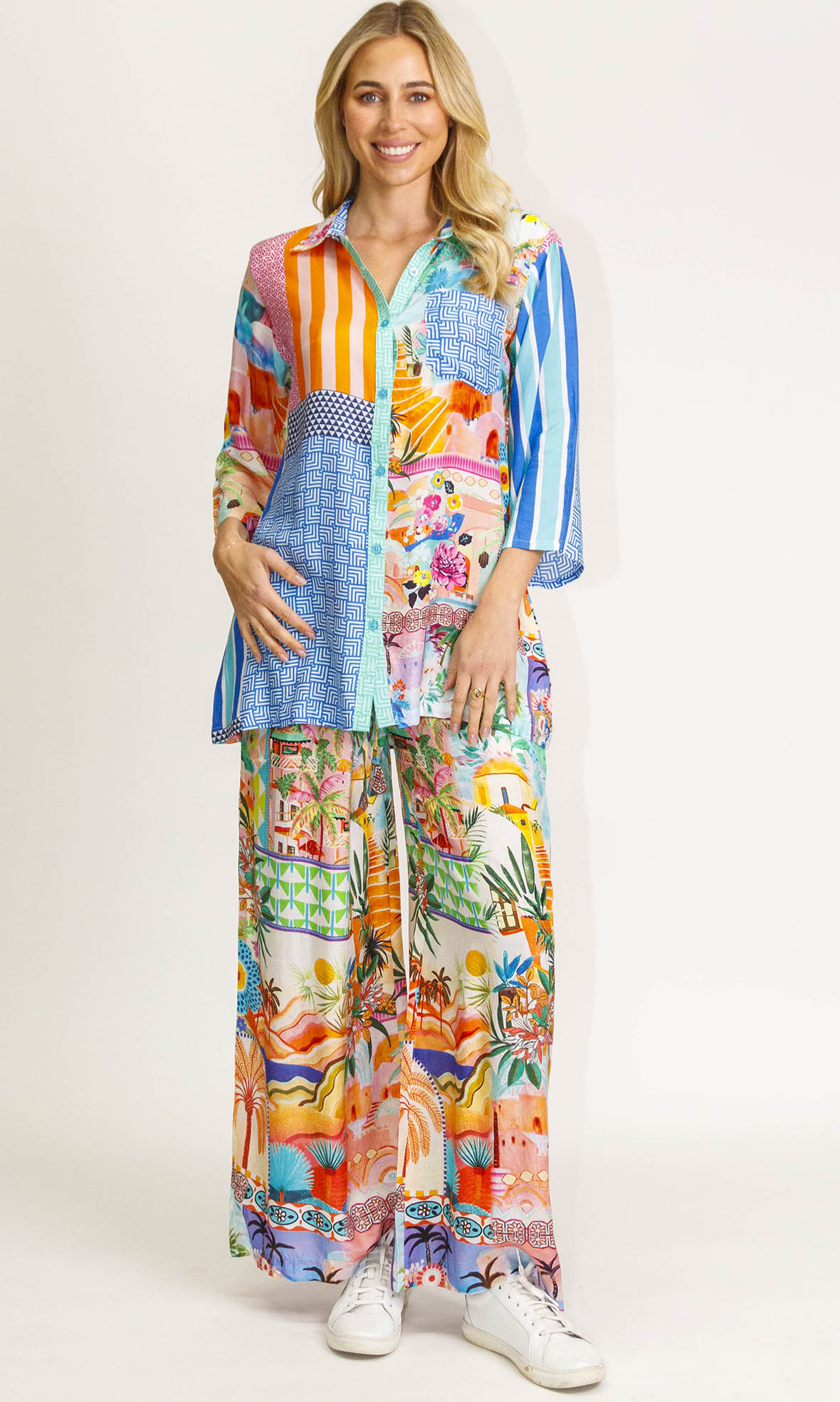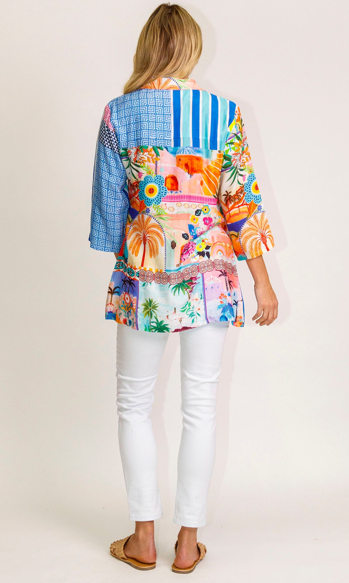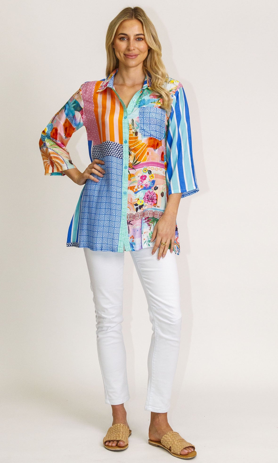 Lovely longer line shirt with 3/4 sleeve. Button front.