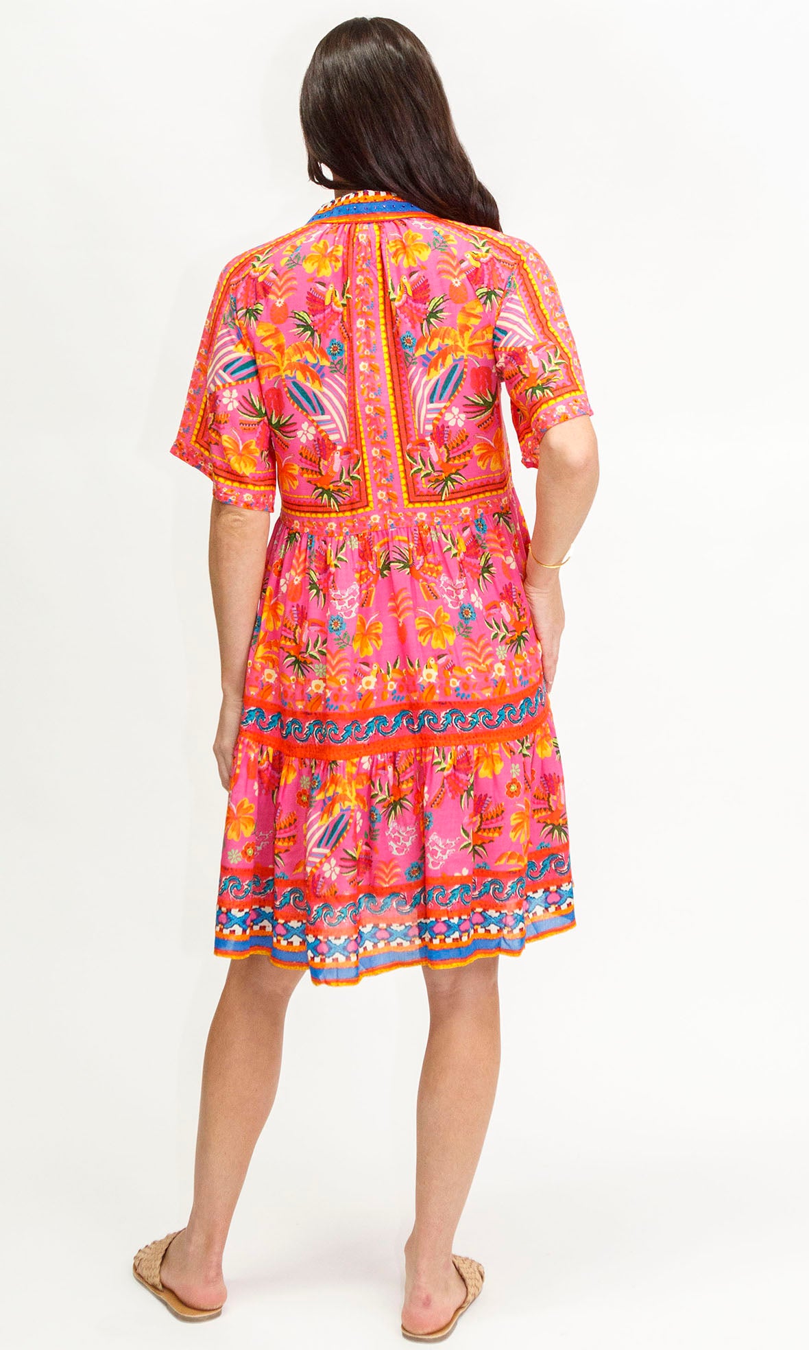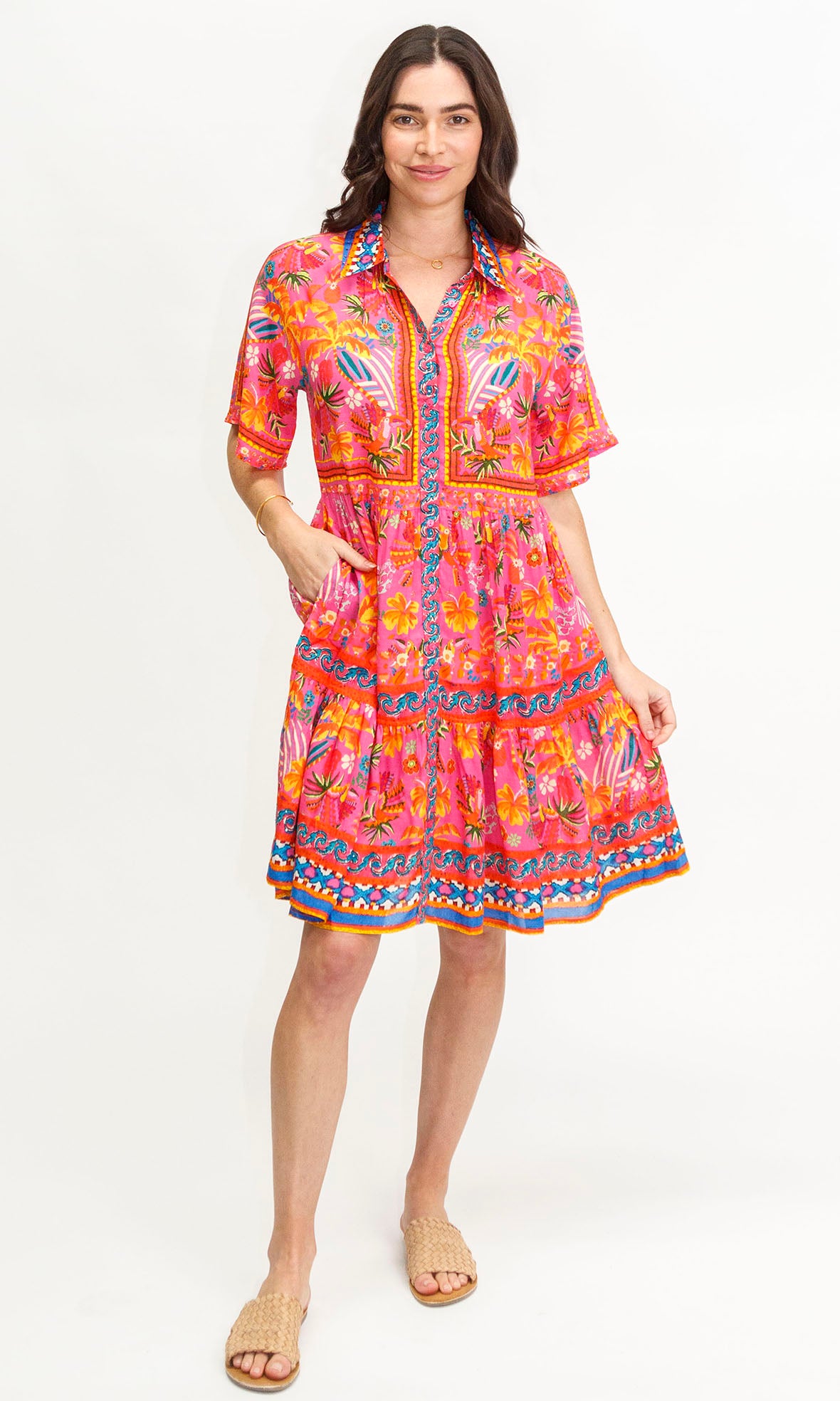Look gorgeous and feel comfortable in the Lulasoul Brasilia Dress. Crafted with a relaxed fit, collar, pockets and a tropical inspired pattern, this chic dress is perfect for any occasion. Add a touch of elegance to your wardrobe with this stunning and comfortable piece.