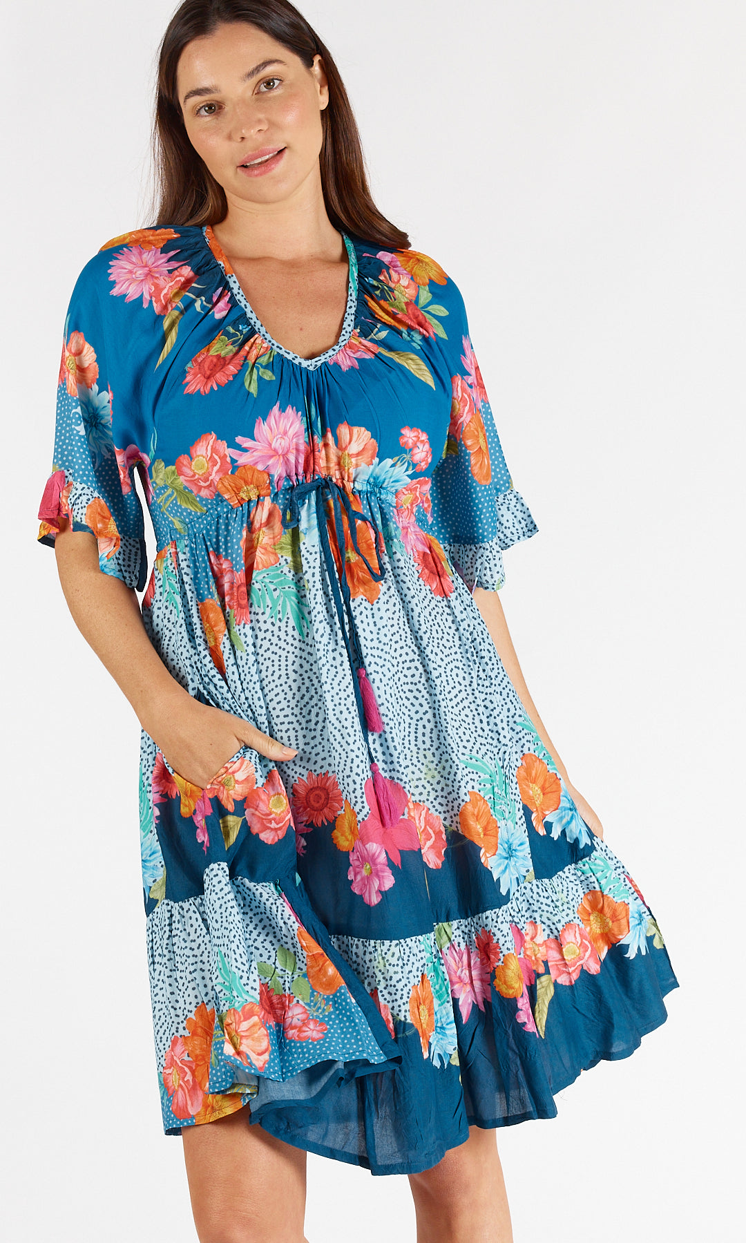Viscose Tie Dress Trinidad Ocean