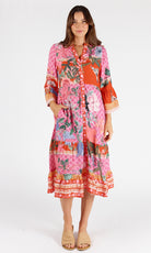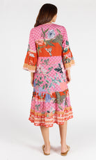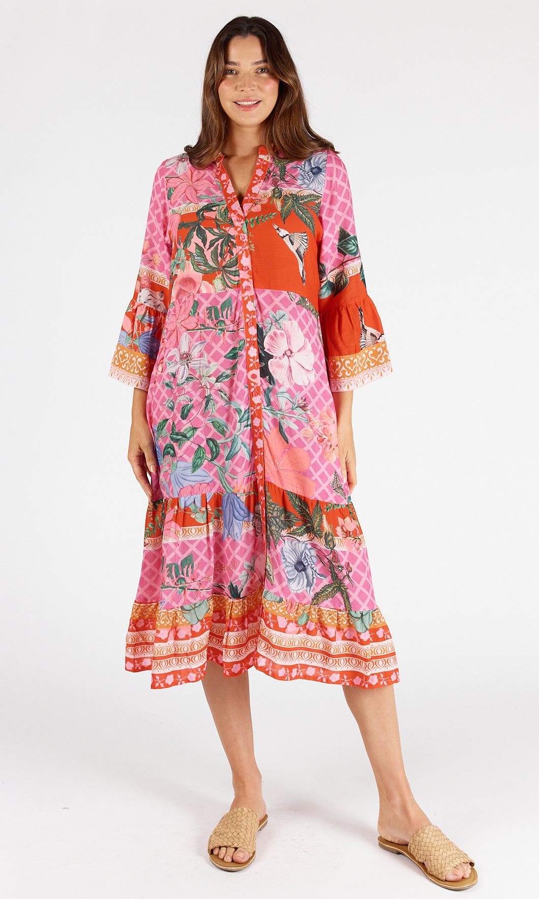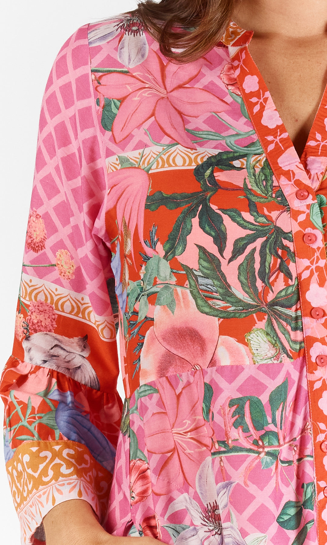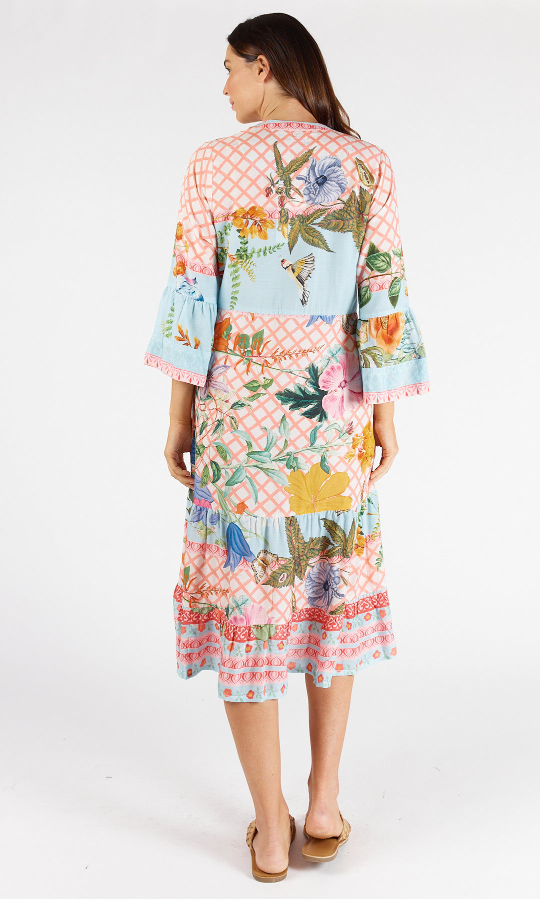 The BELIZE MIDI from Lula Soul is a stunning mist-hued dress with a frill cuff on the sleeves. Its gorgeous print features intricately detailed florals and botanicals, making it the perfect choice for any occasion. Elevate your wardrobe with this exclusive and elegant midi dress.