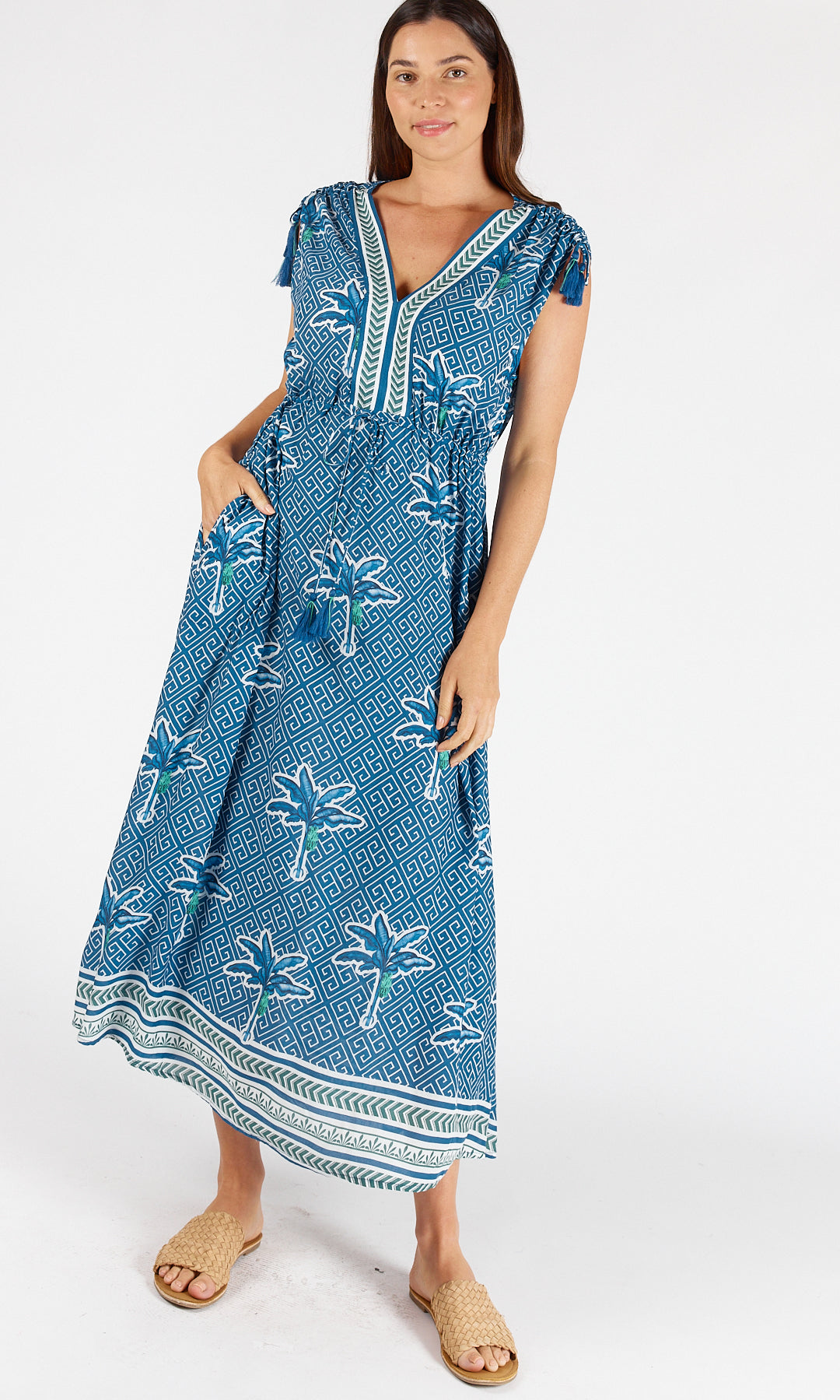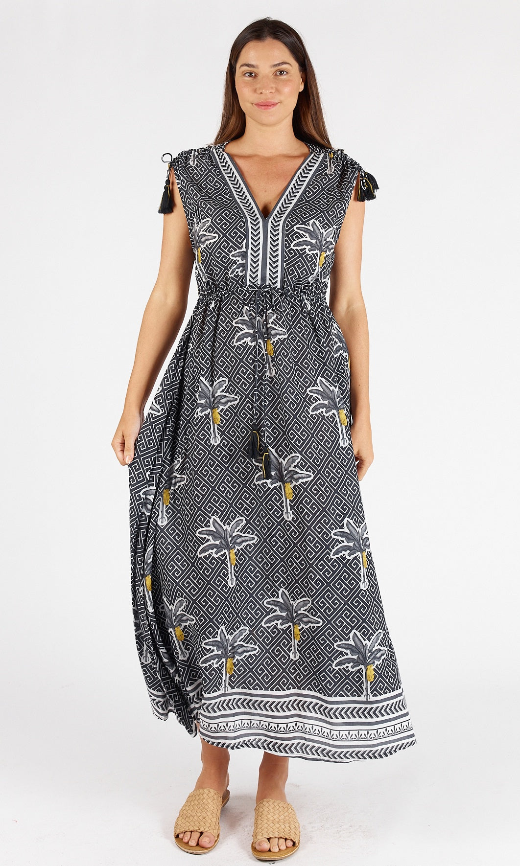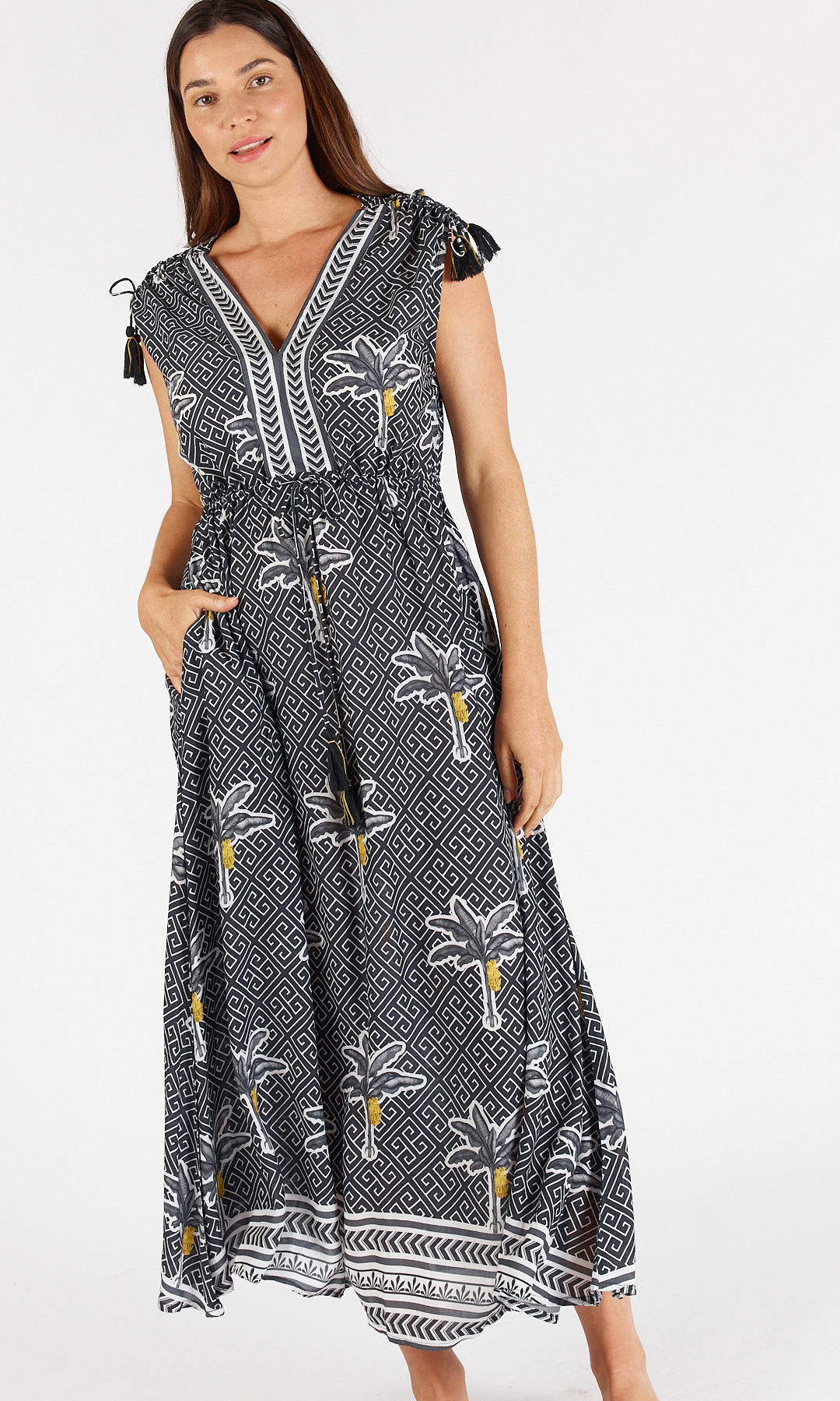 - Adjustable drawstring with ruching on shoulders