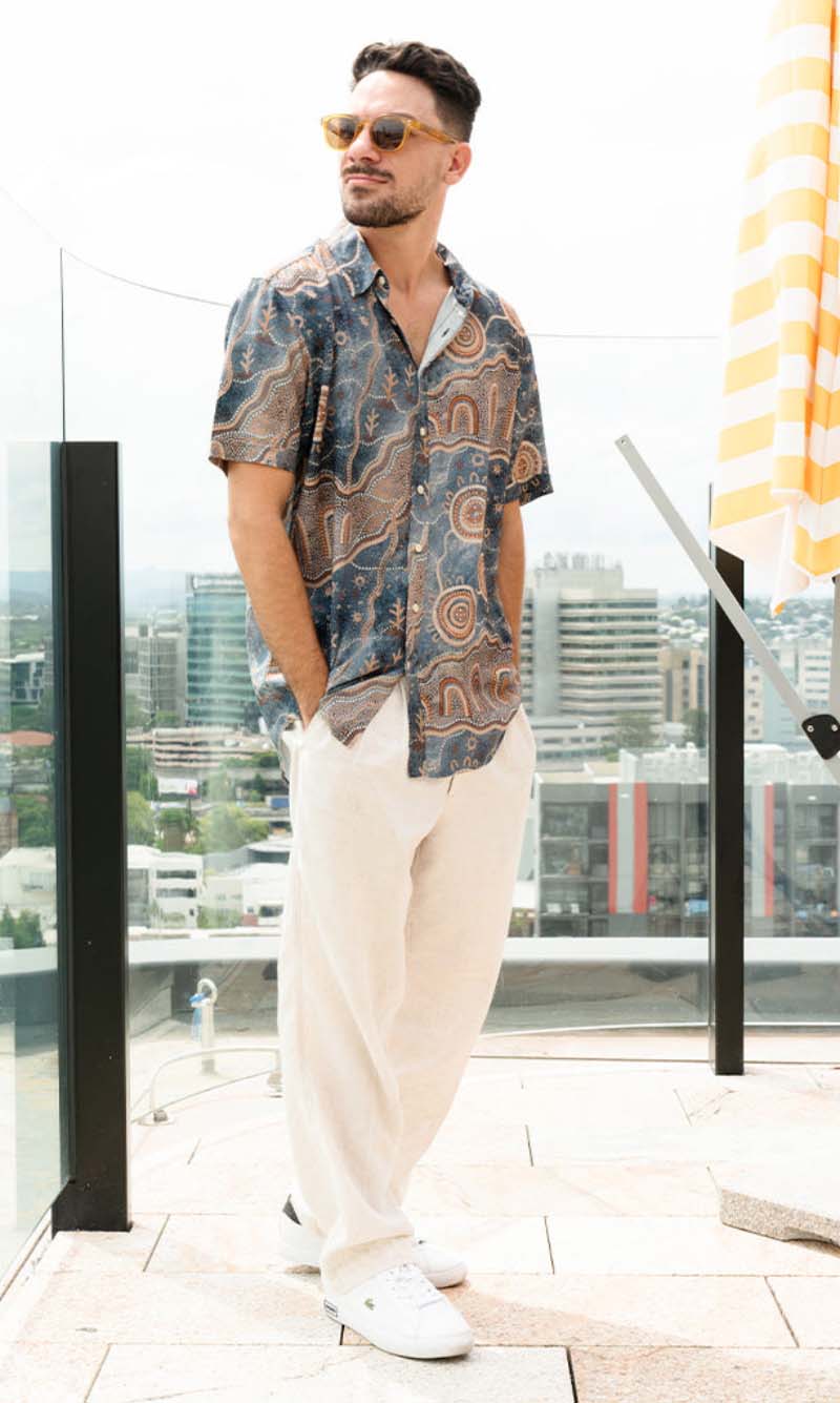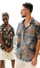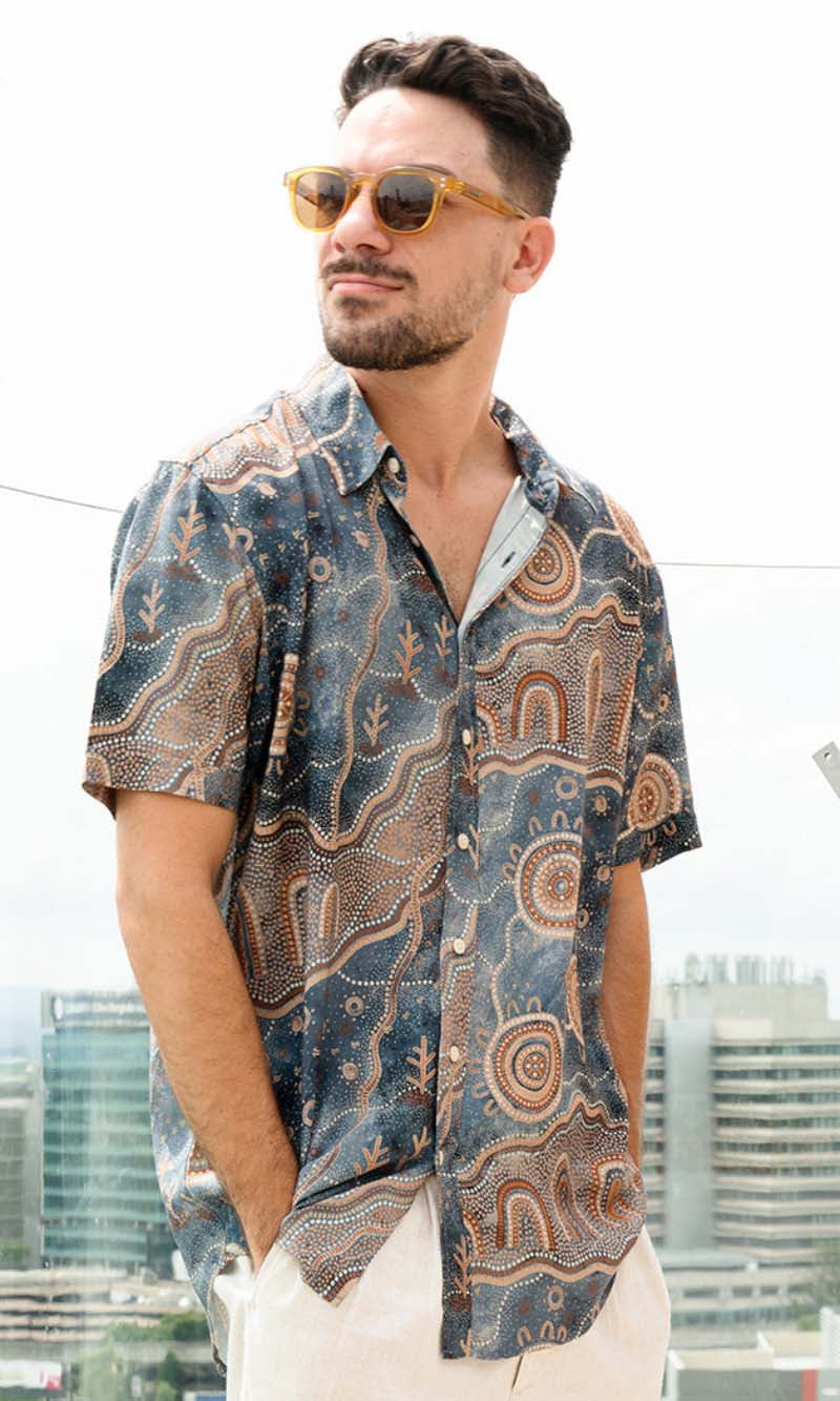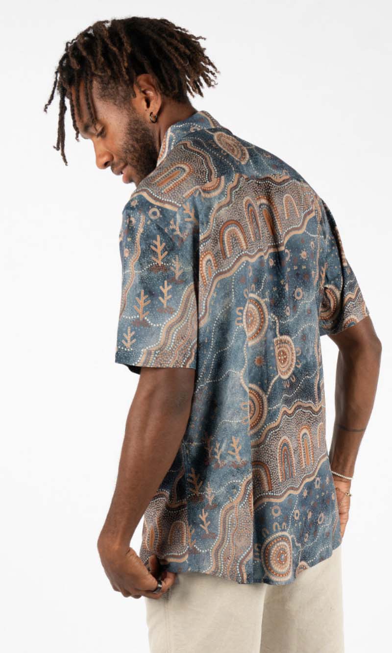 Aboriginal Art Men's Button Up Shirt Yilawura (Night)