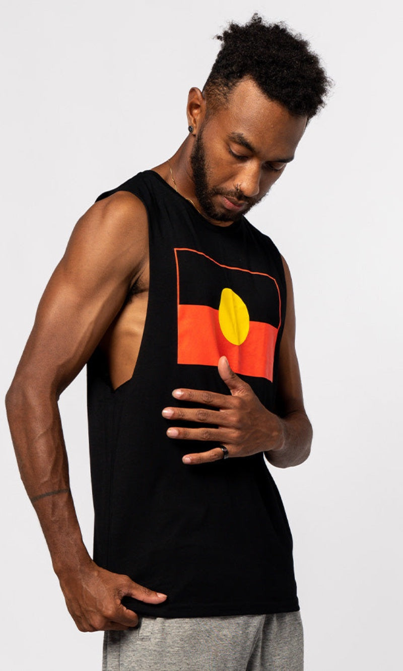For hot summer days you can’t go past a muscle tee featuring a bold graphic. Our men's tanks are composed of 100% combed cotton, making them super soft, comfortable and durable. Support Indigenous communities, and feel proud wearing the flag of the First People of our beautiful Country.