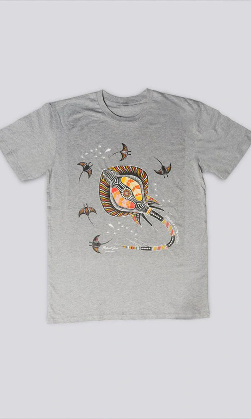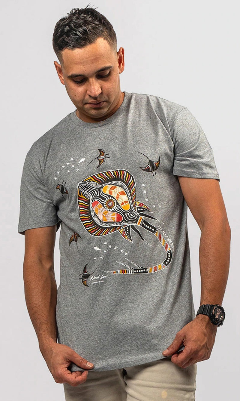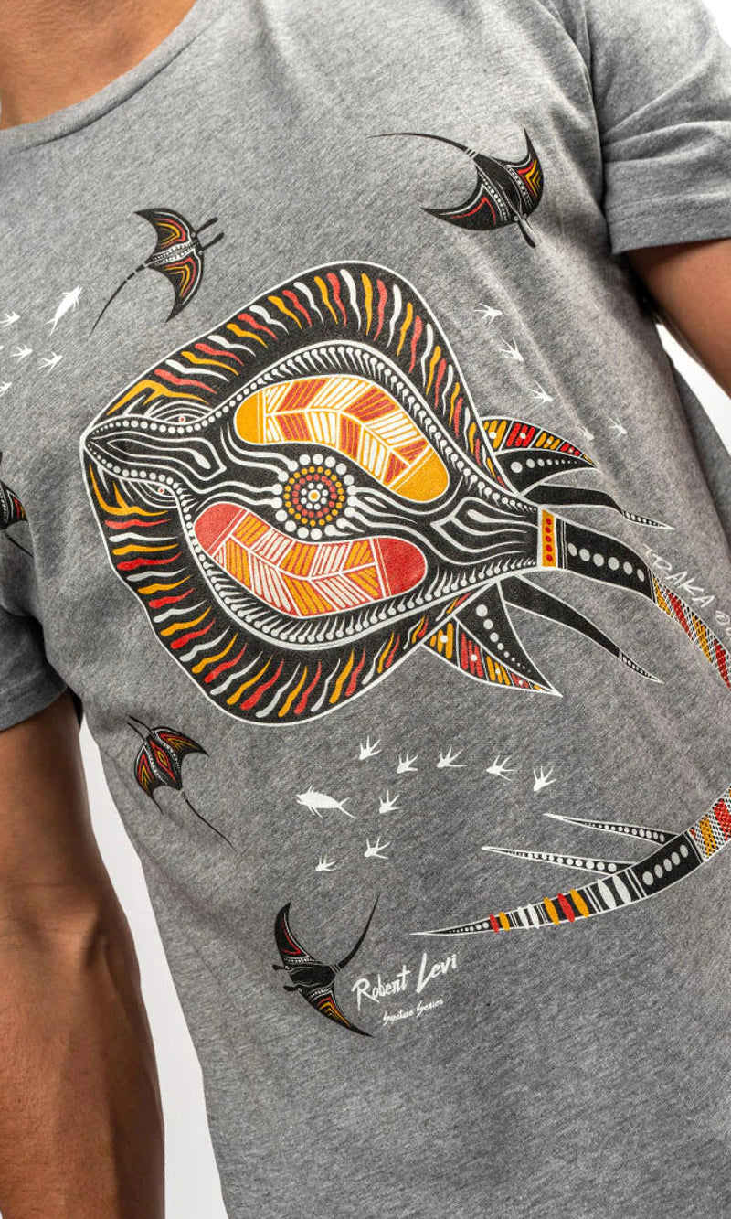 Aboriginal Art Unisex T-Shirt Stingray Fever Grey Marle