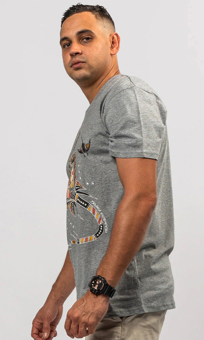 Chillax, kick back and throw a line in these new Traka tees from the Robert Levi Signature Tee Collection. Designed by proud Torres Strait Islander Kauraraig man and artist, Robert Levi, these tees are perfect for that chill, surf vibe. This fit is made to endure everyday wear, having the composition of 100% combed cotton, a ribbed crewneck and double needle hems. Try pairing this unisex regular fit tee with some denim shorts and your fave pair of sandals or white sneakers.