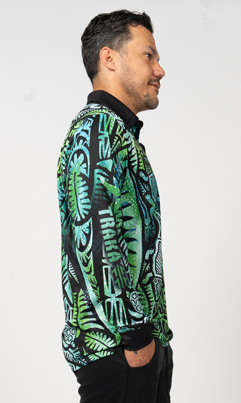Spend a day outdoors with our long sleeve polos designed to pay tribute to the lands and culture of the Torres Strait Islander peoples. The long sleeved design and UPF50+ protection gives you plenty of coverage and protection for a day out in the sun.