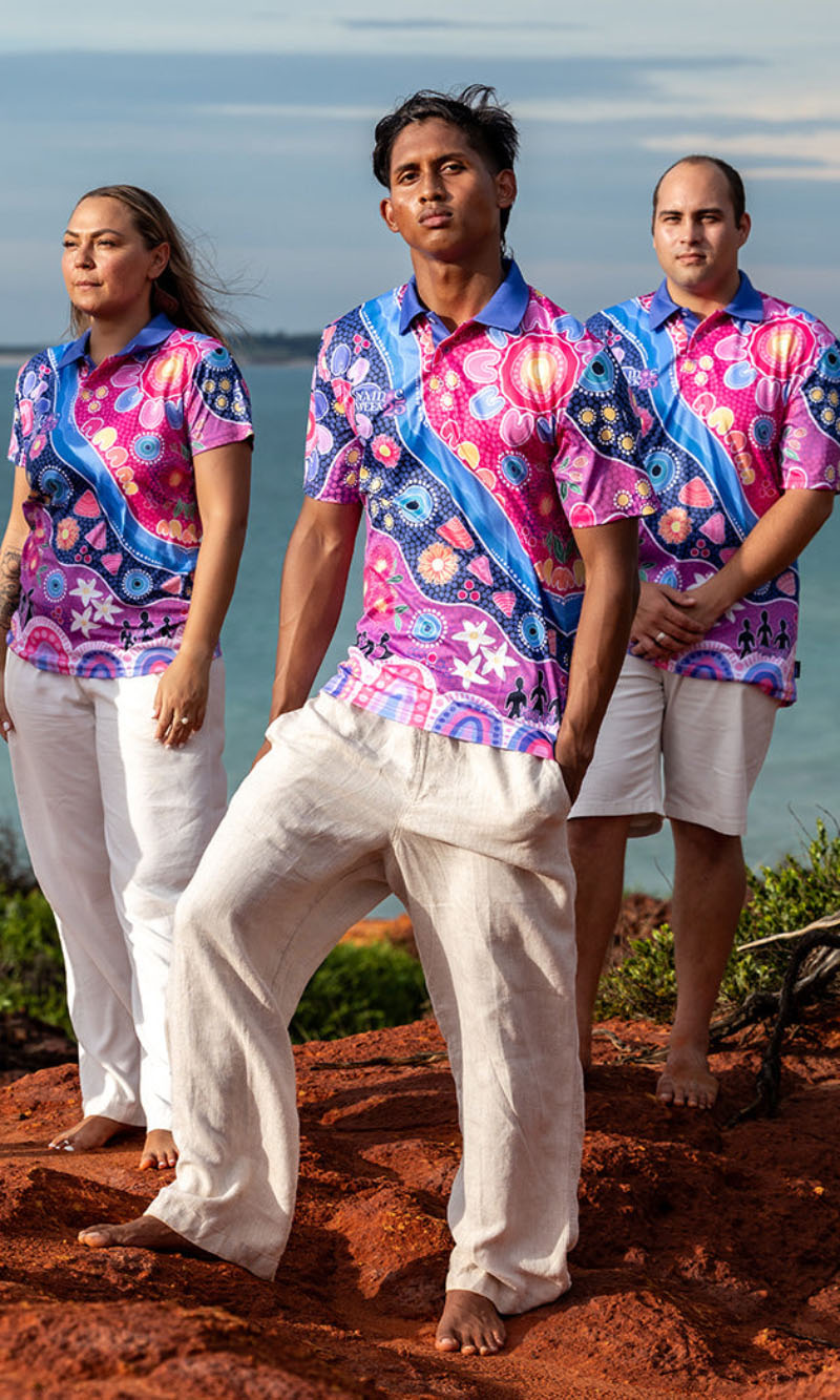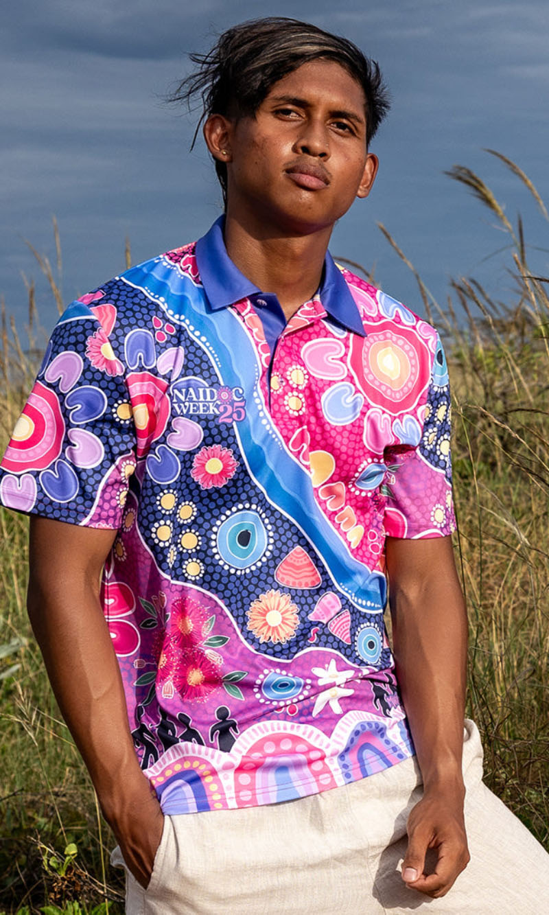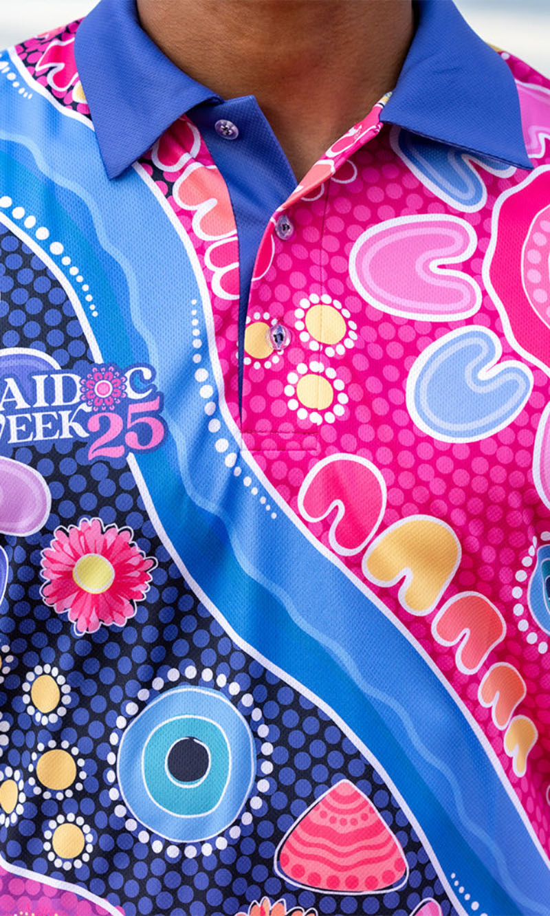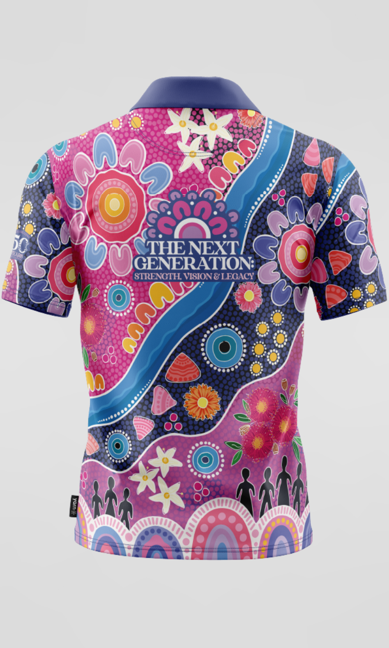 Our NAIDOC Week 2025 Polo collection features our talented collaborating artists' reflection on and response to this year's theme ‘The Next Generation: Strength, Vision & Legacy’.